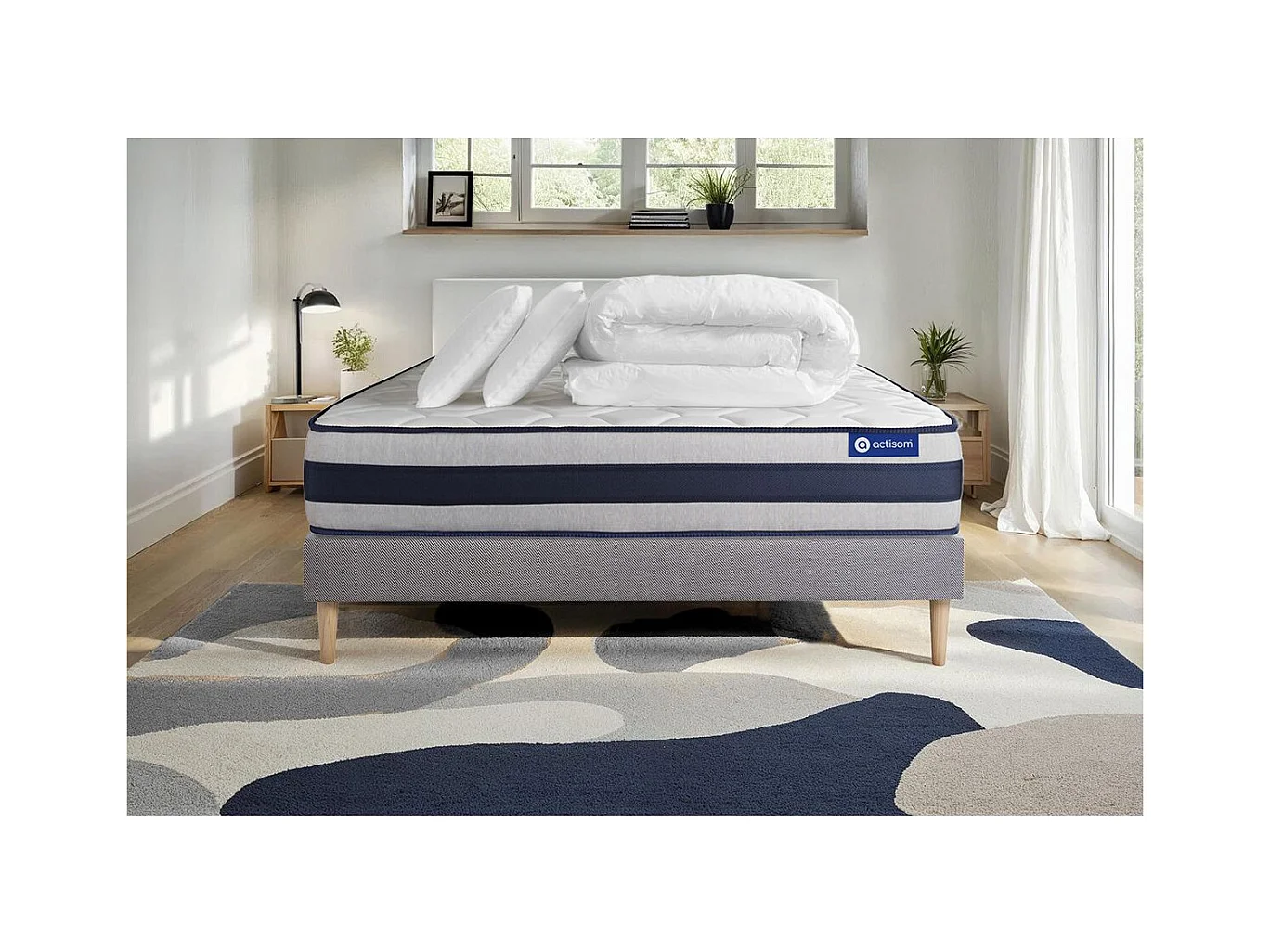 Pack prêt à dormir matelas à mémoire ACTIMEMO PUR 140x190cm 3zones de confort + sommier KIT gris + 2 oreillers + couette