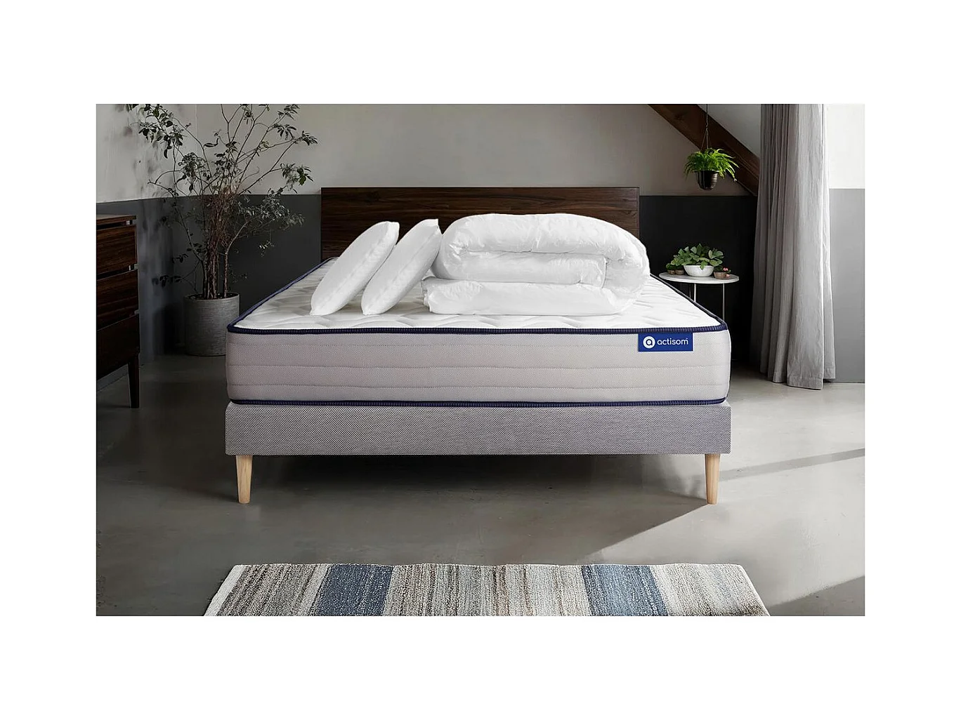 Pack prêt à dormir matelas à mémoire ACTIMEMO PUR 140x190cm 3zones de confort + sommier KIT gris + 2 oreillers + couette
