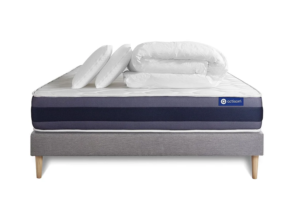 Pack prêt à dormir matelas Mémoire de forme ACTIMEMO SLEEP 140x190 5zones confort + sommier KIT gris + 2 oreillers + couette