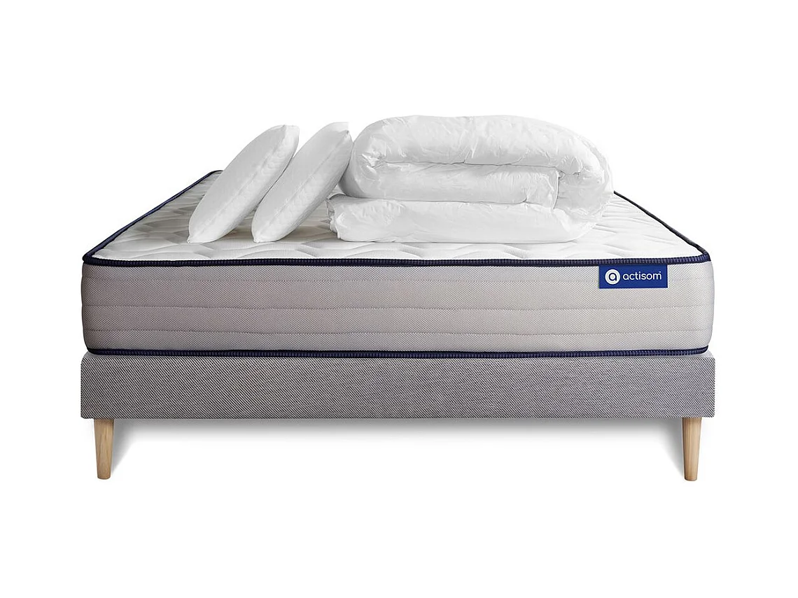 Pack prêt à dormir matelas Ressorts ensachés + Mémoire de forme ACTIFLEX ERGO 200x200 + sommier KIT gris +2oreillers+couette