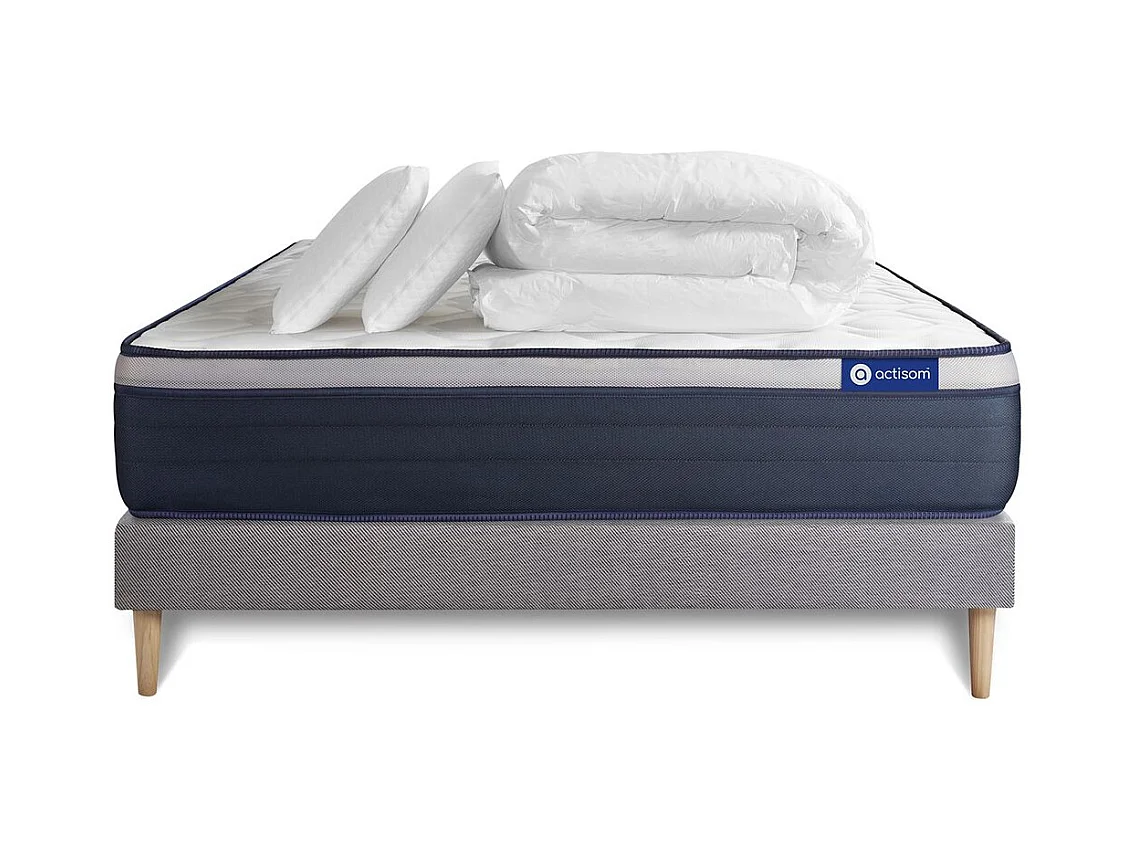 Pack prêt à dormir matelas Ressorts ensachés+Mémoire de forme ACTIFLEX MAX 140x190cm + sommier KIT gris + 2oreillers+couette