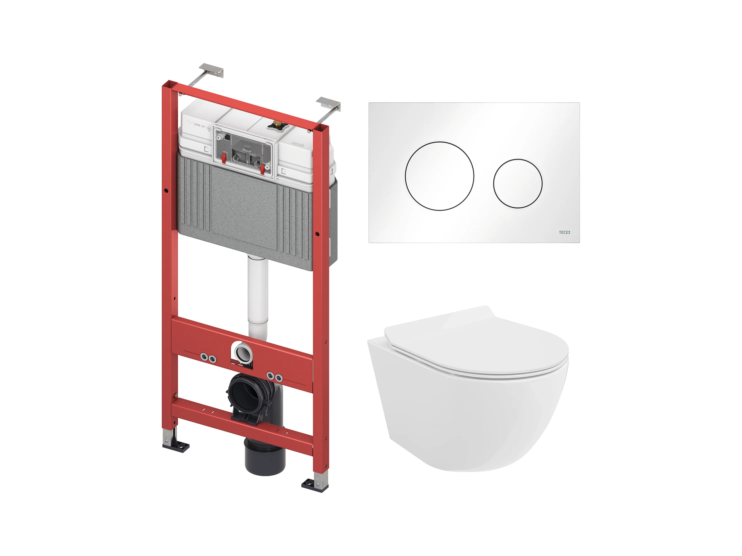 Pack WC : élément de pré-montage TECEbase + WC Rolo blanc + tapis d'isolation acoustique + plaque de commande en blanc