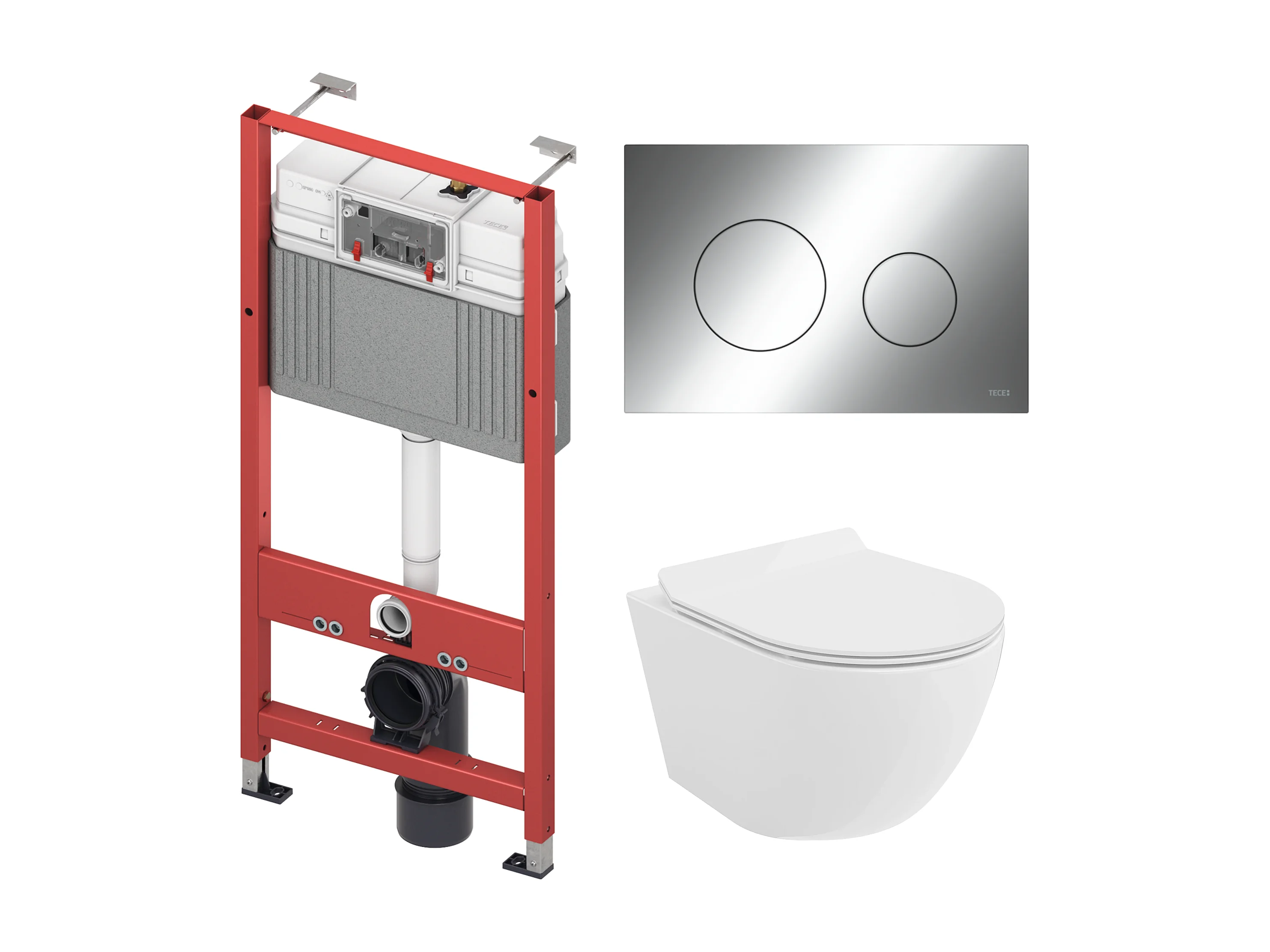 Pack WC : élément de pré-montage TECEbase + WC Rolo blanc + tapis d'isolation acoustique + plaque de commande en chrome