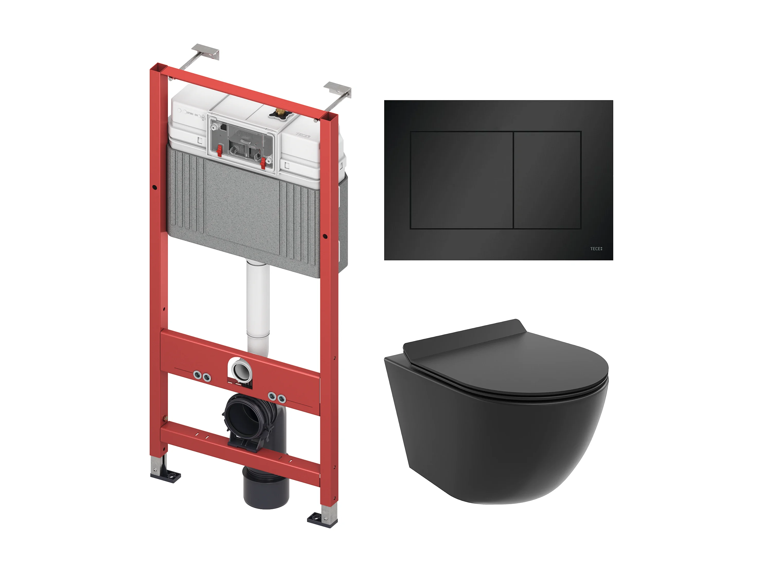 Pack WC : élément de pré-montage TECEbase + WC Rolo noir + tapis d'isolation acoustique + plaque de commande en noir