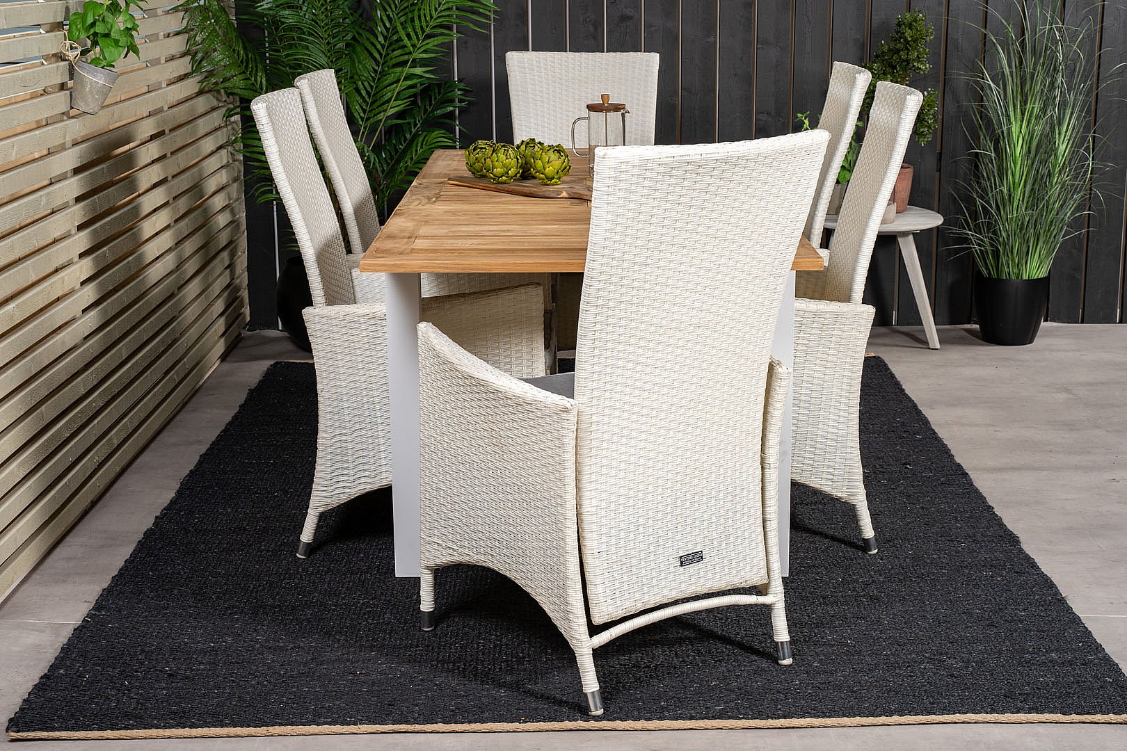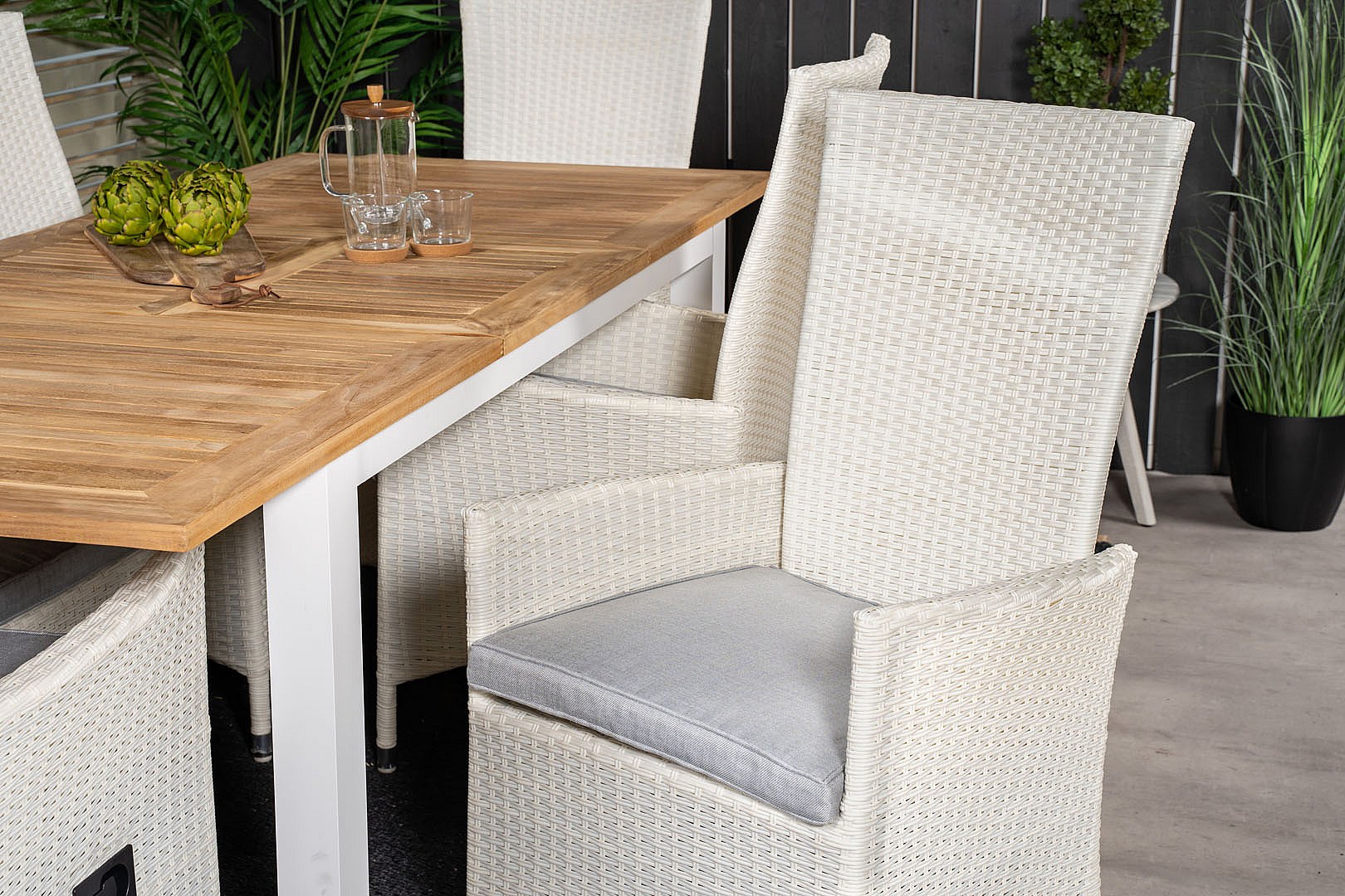 Padova Chaise de jardin avec accoudoirs, coussins inclus, réglable, blanc, gris.