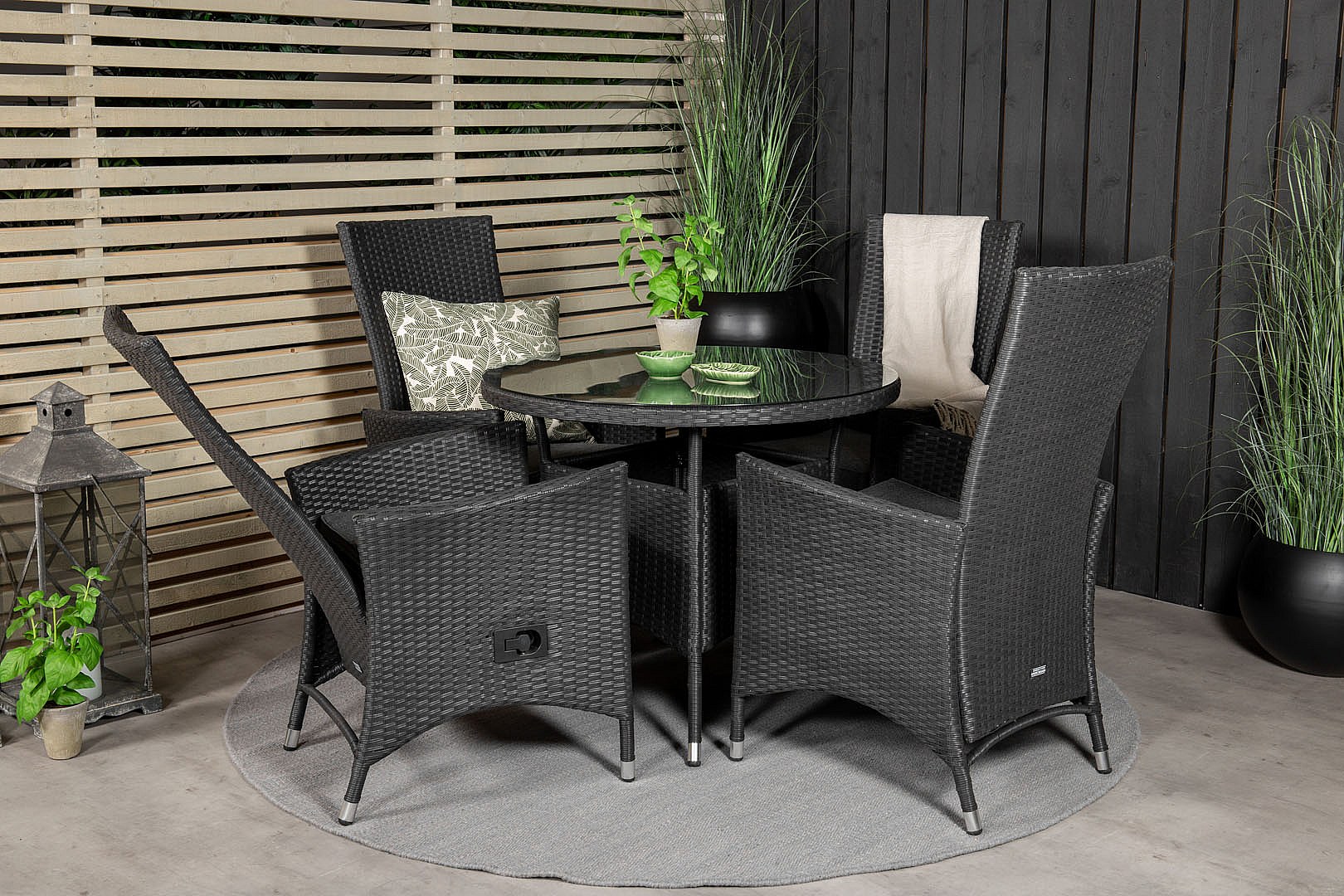 Padova Chaise de jardin avec support d'assise, réglable, en noir.