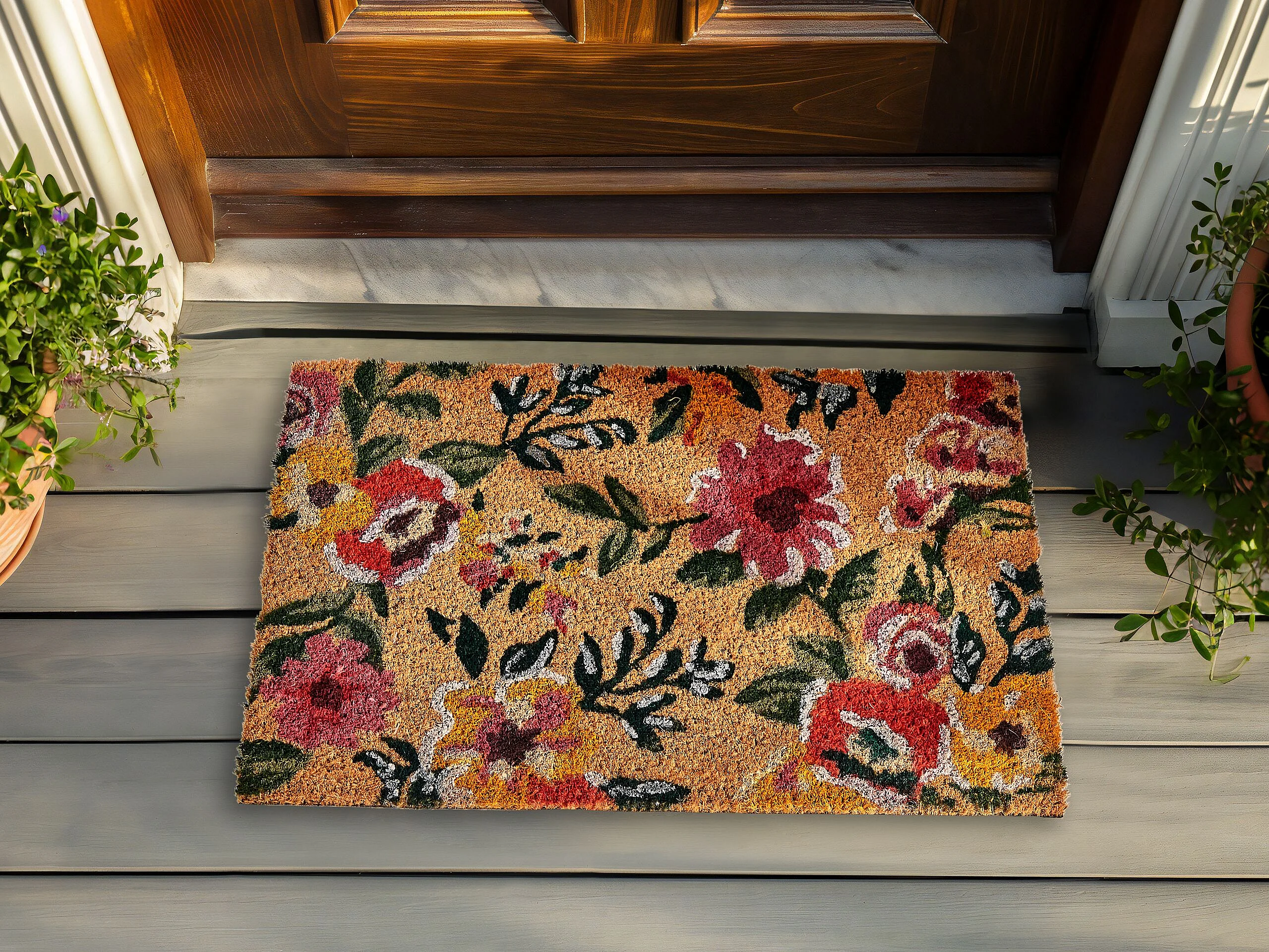 Paillasson KITA Multicolore 40 x 60 cm Fleur Fibre de coco