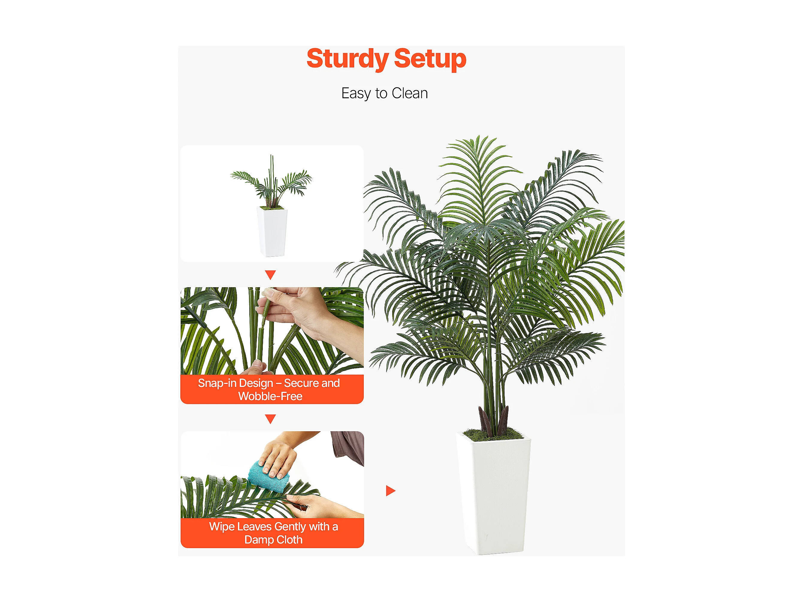 Palmier Artificiel Areca SucceBuy, 1,5 m, Plante Artificielle Tropicale en Pot Blanc, Faux Arbre Tropical Palmier Areca, Fausse Plante pour Salon