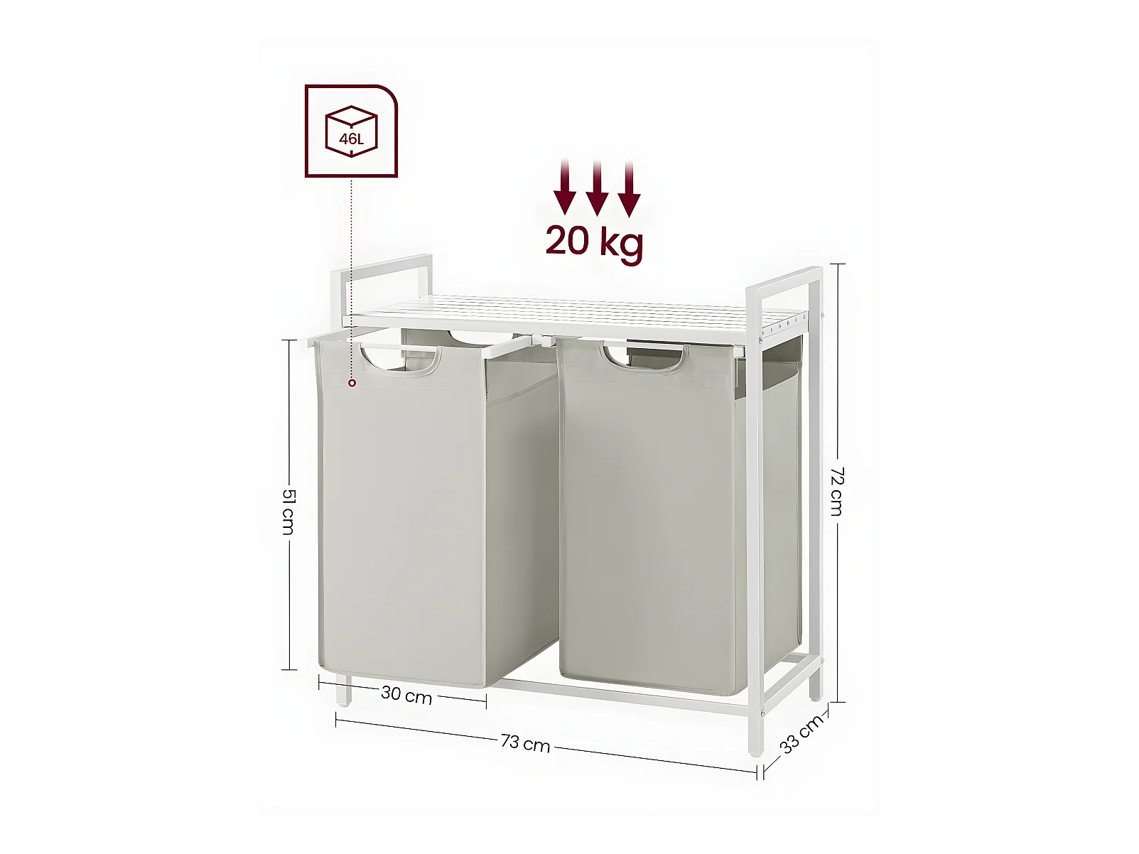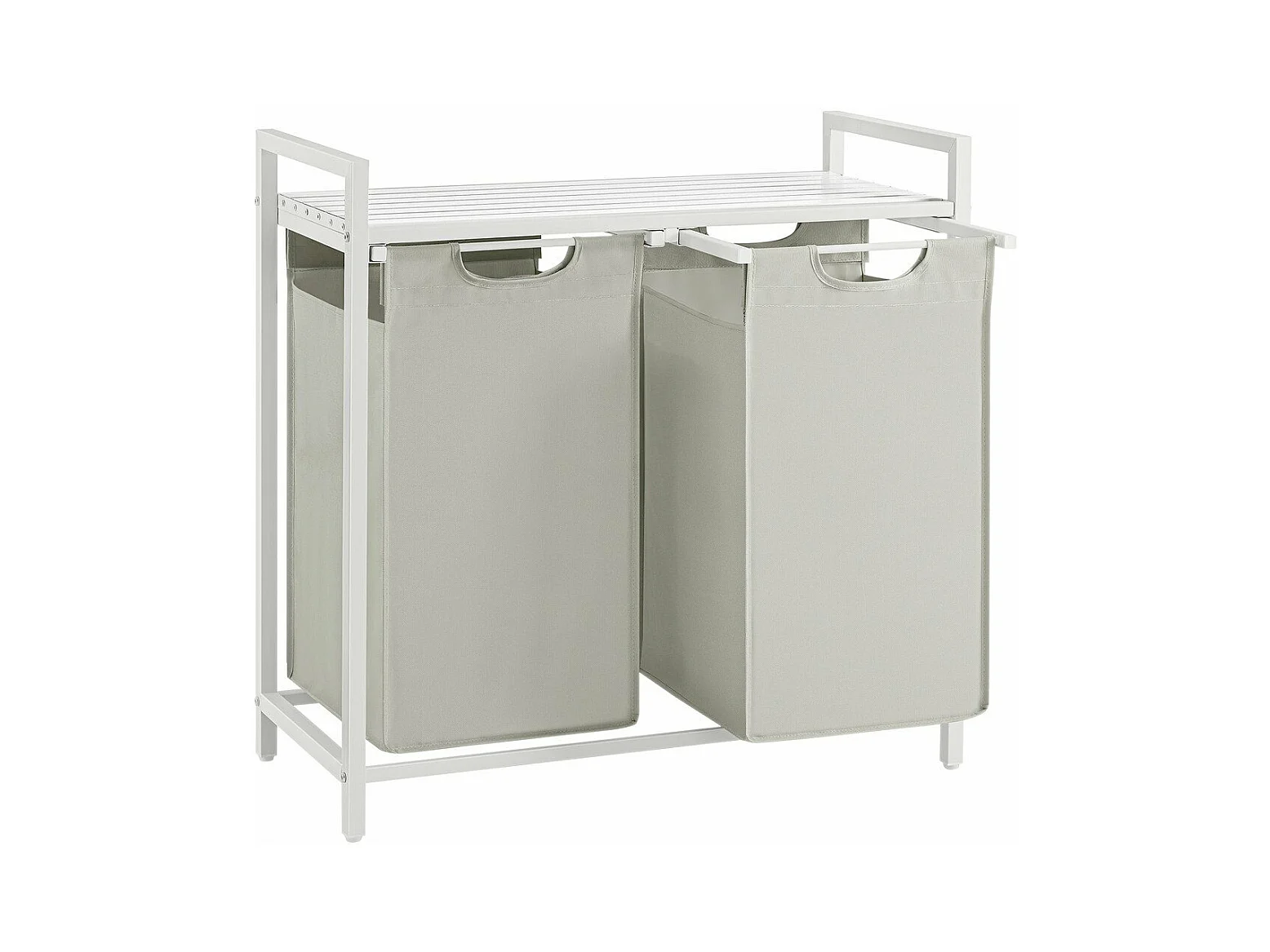 Panier à linge 2 compartiments coulissants gris clair - L71 cm