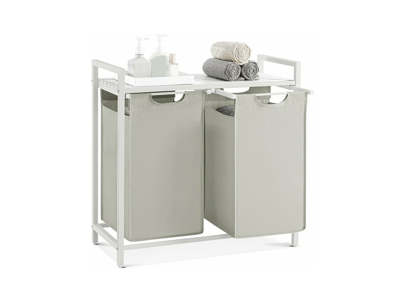 Panier à Linge 2 Compartiments, 62 x 31 x 60 CM, Gris