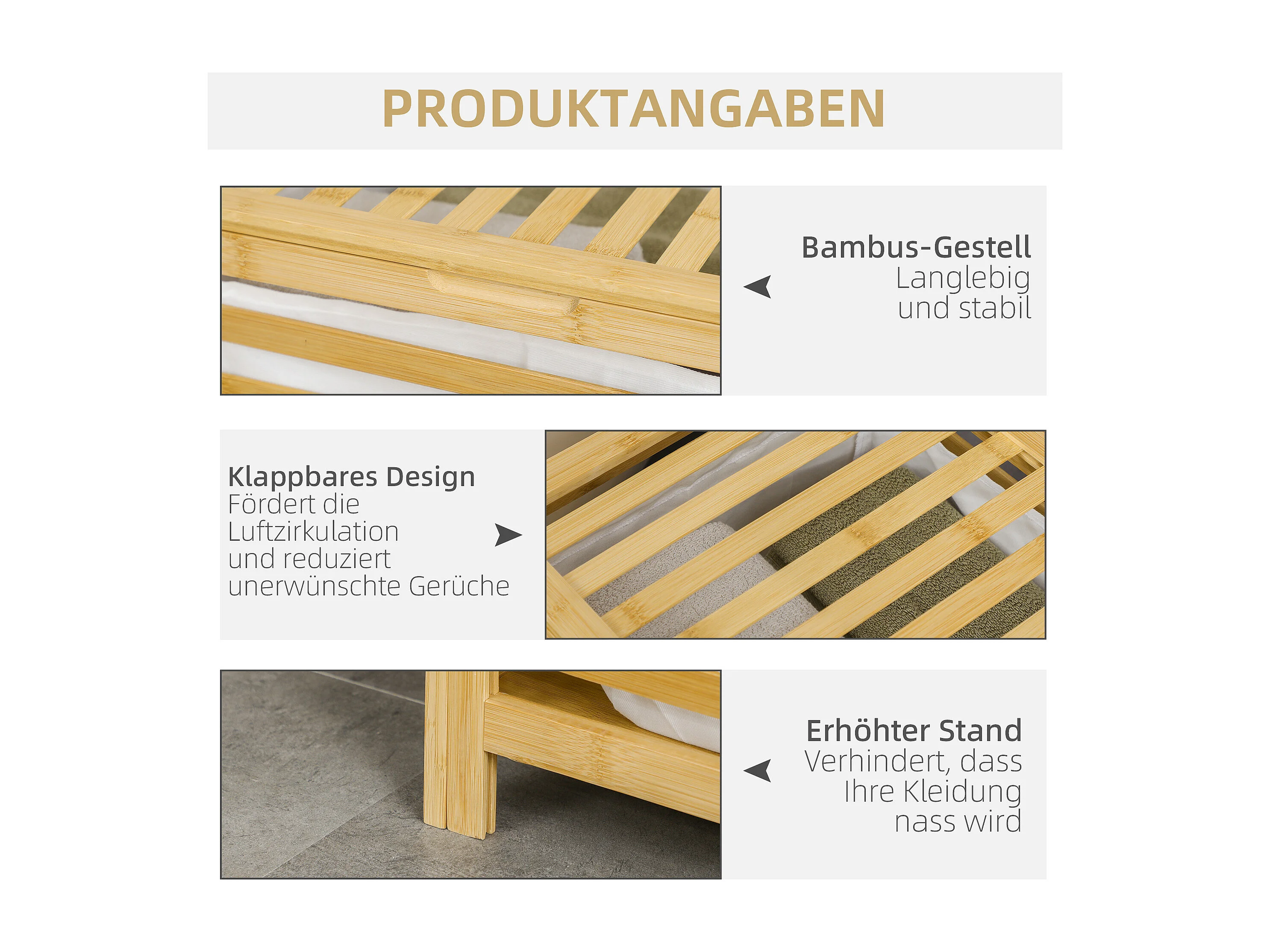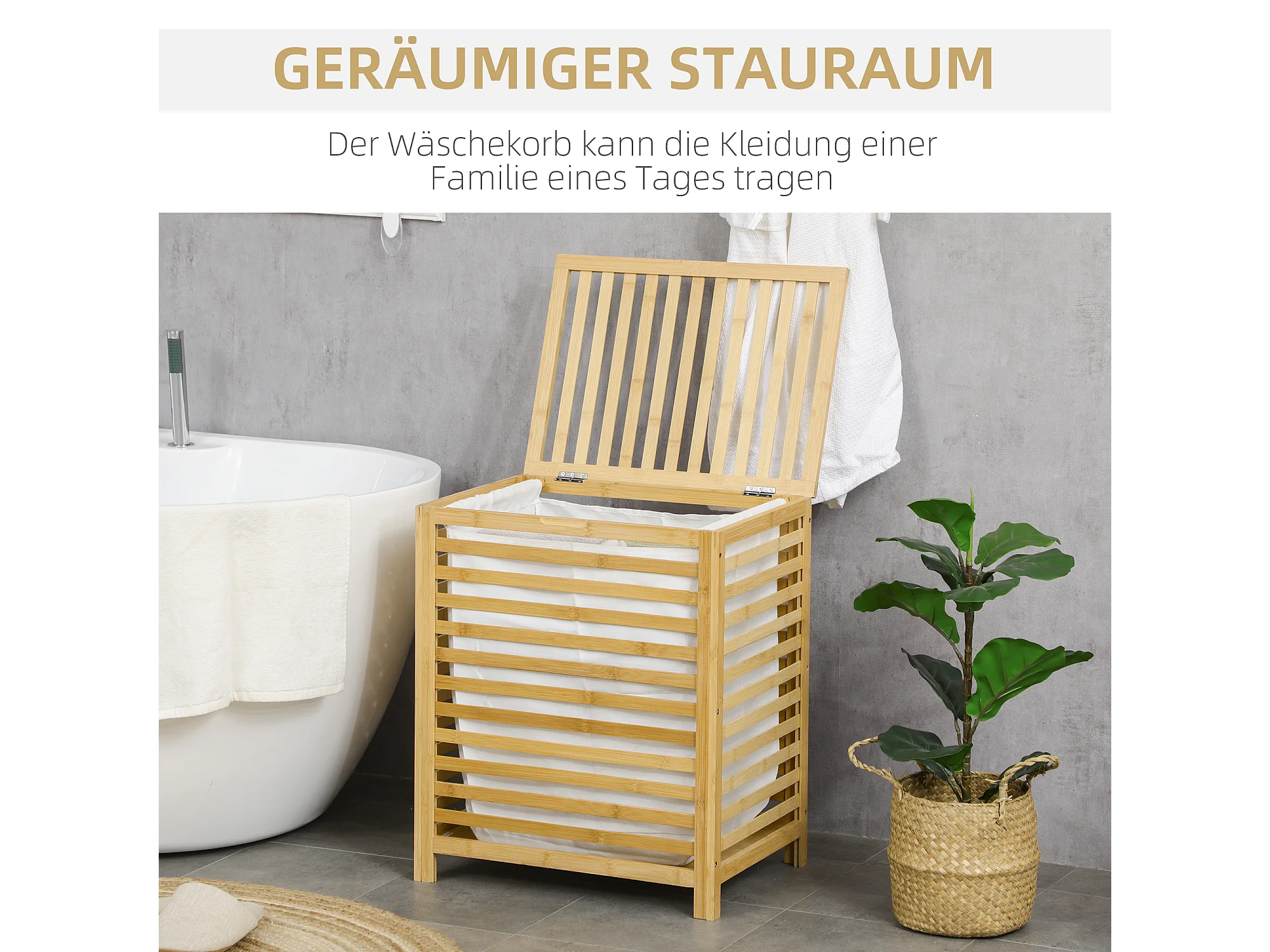 Panier à linge 55L avec sac amovible, bambou, naturel (50x36x60 cm)