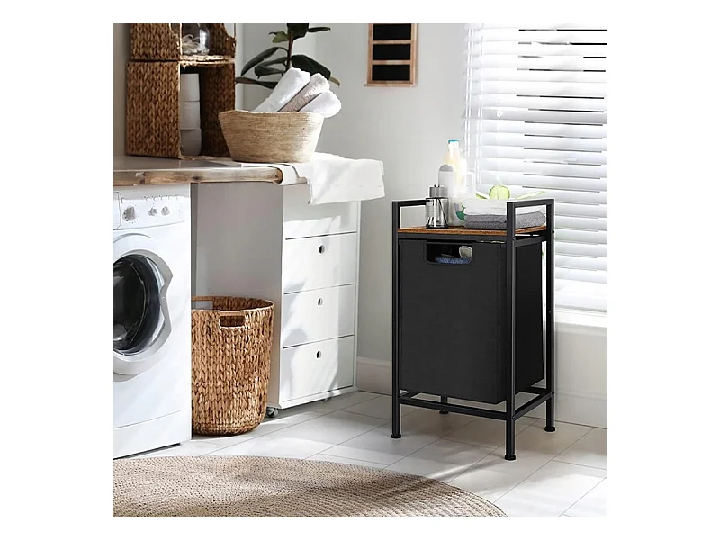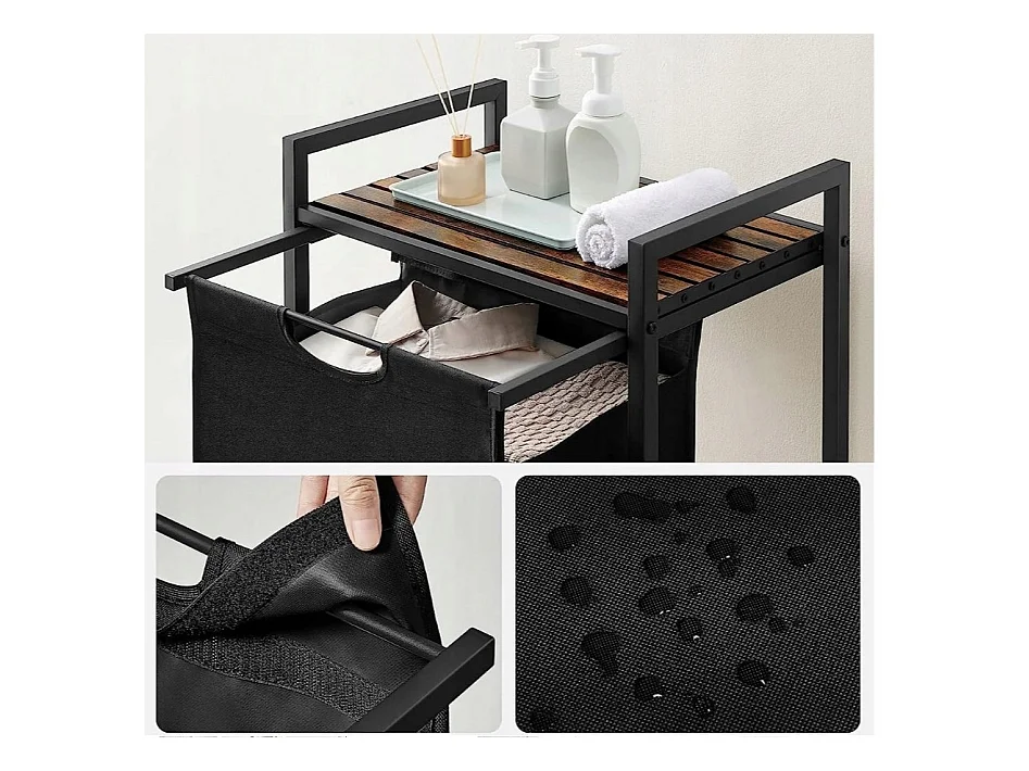 PANIER À LINGE AUTONOME AVEC ÉTAGÈRE INDUSTRIEL LOFT EN BOIS 72x50x33 CM