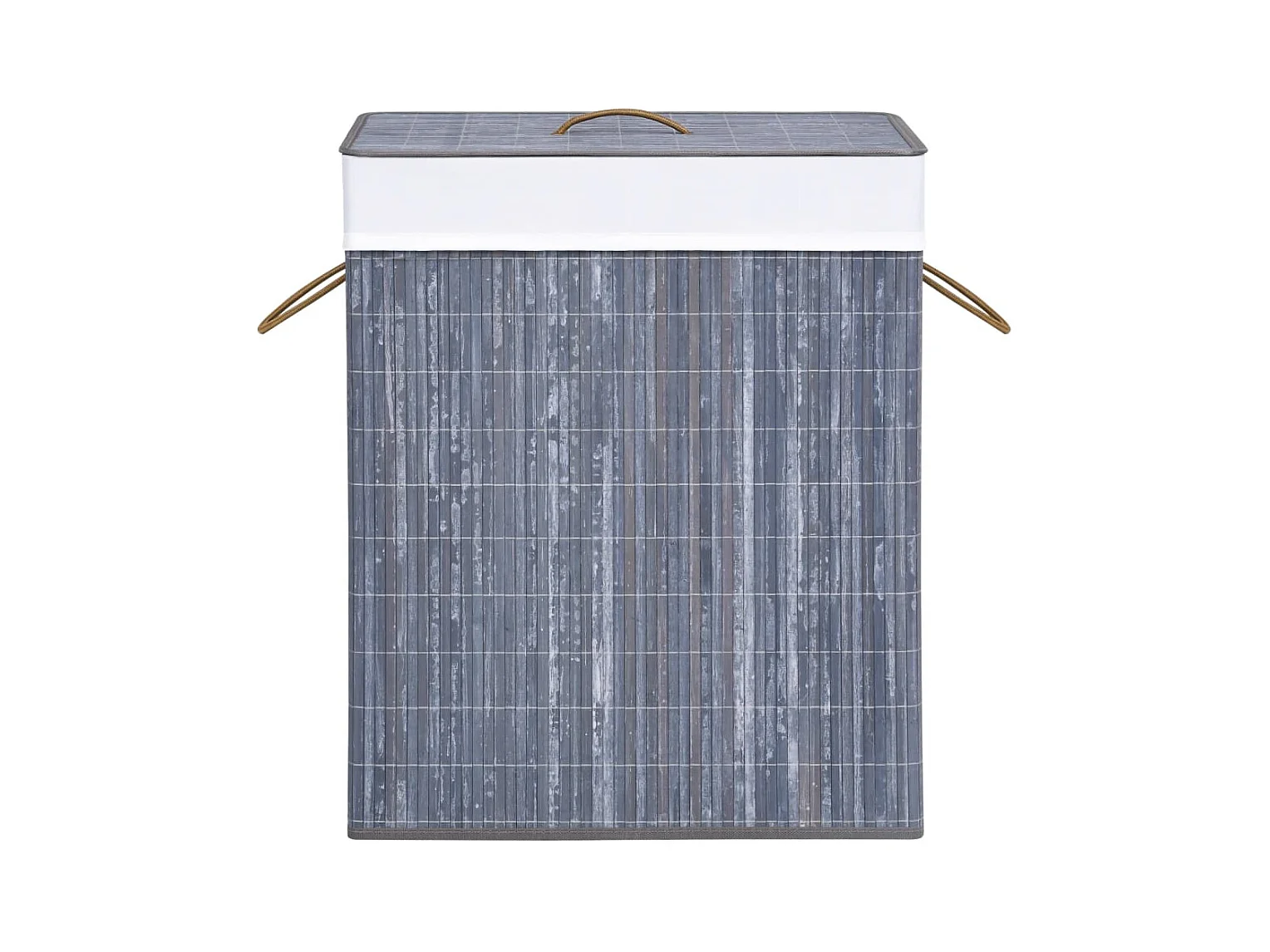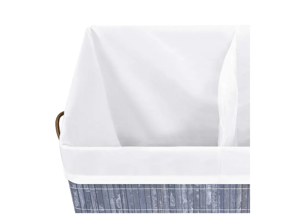 Panier à linge 100L avec 2 compartiments, bambou, gris (52x32x63 cm)