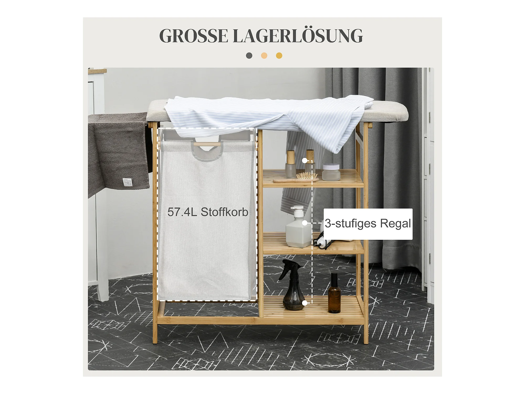 Panier à Linge avec Planche à Repasser, 57.4L, avec Étagère à 3 Niveaux, Bambou Naturel (113x34x82 cm)