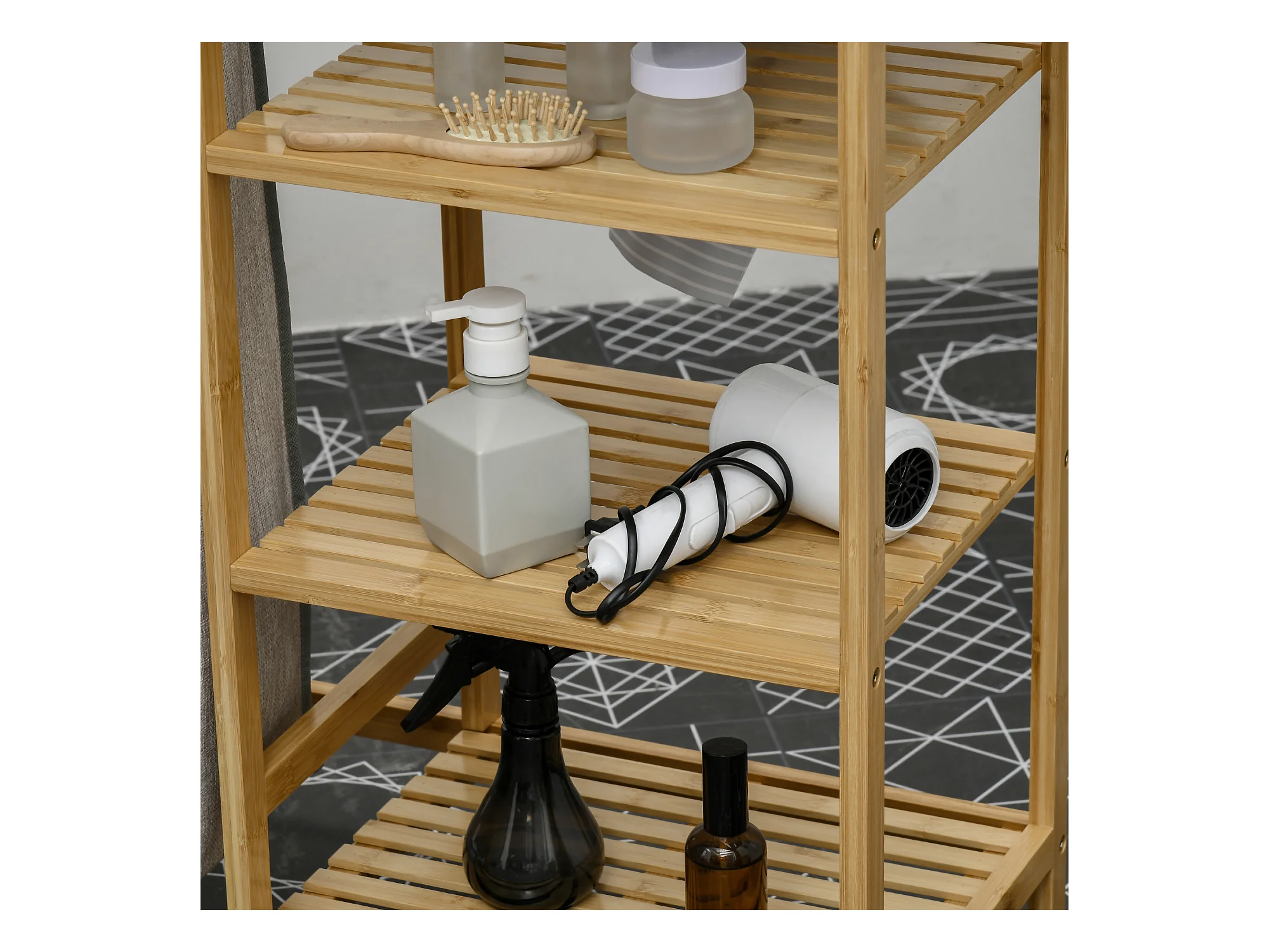 Panier à linge double avec étagères ouvertes, bambou naturel et tissu, couleur naturelle (44x34x96cm)