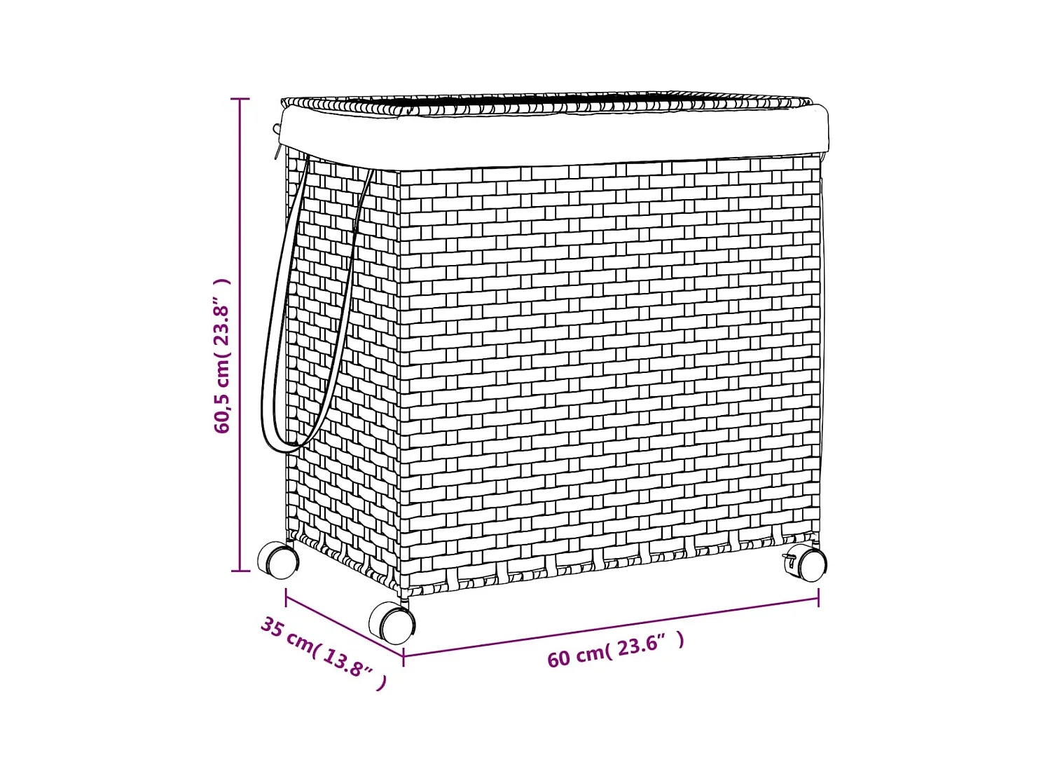 Panier à linge avec roulettes gris 60x35x60,5 cm résine tressée