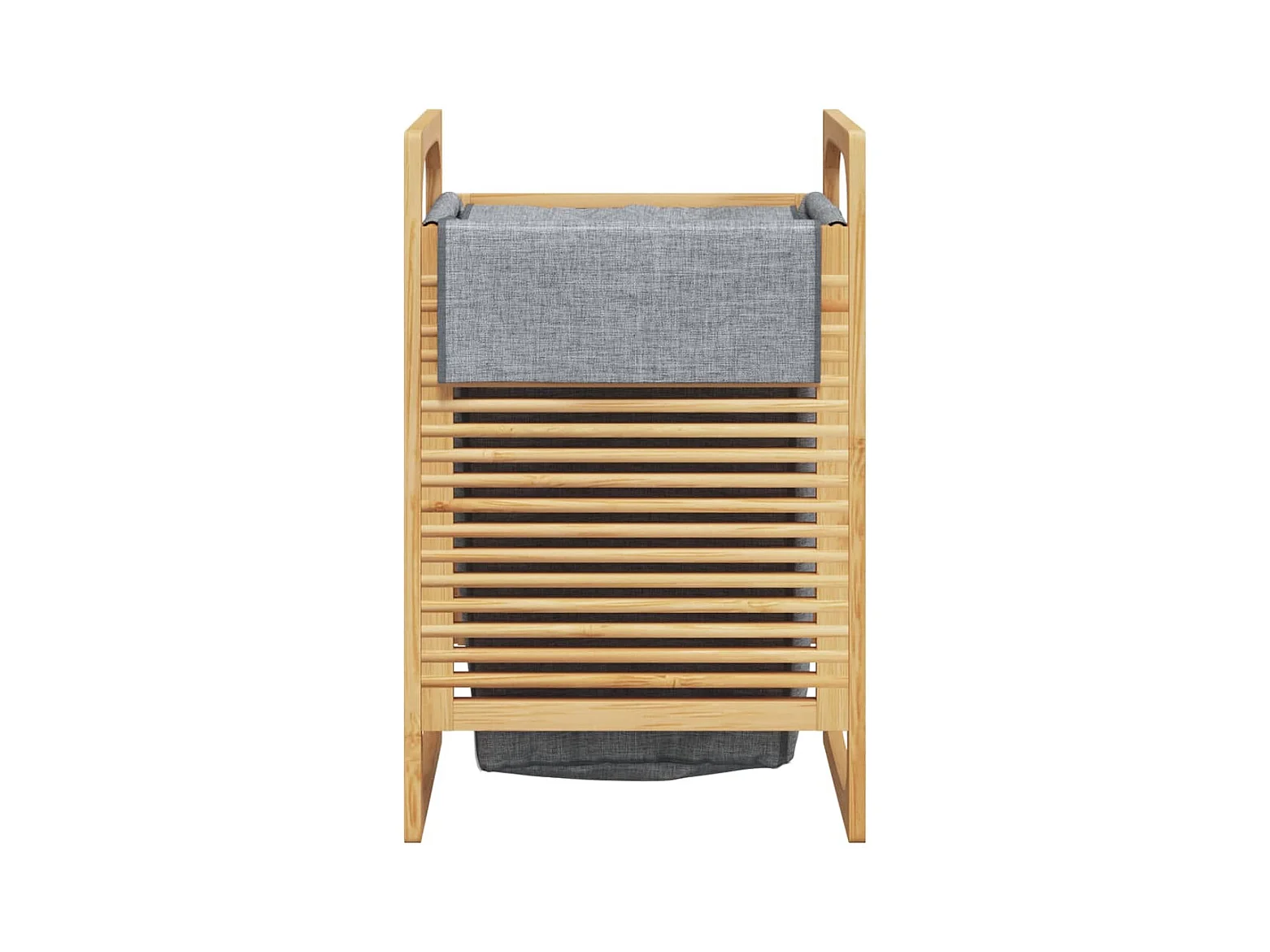 Panier à linge 100L avec 2 compartiments, bambou, gris (52x32x63 cm)