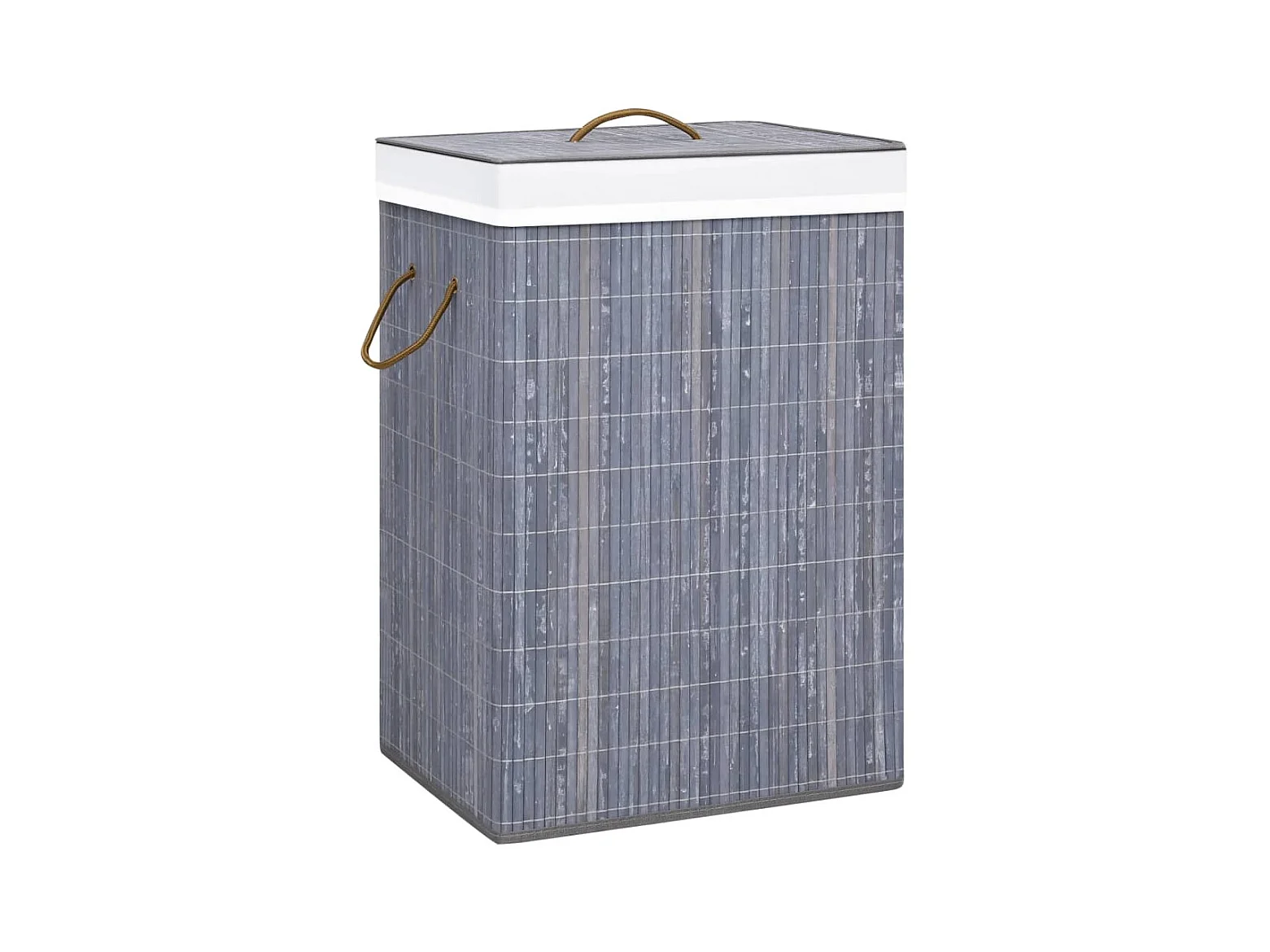 Panier à linge 100L avec 2 compartiments, bambou, gris (52x32x63 cm)