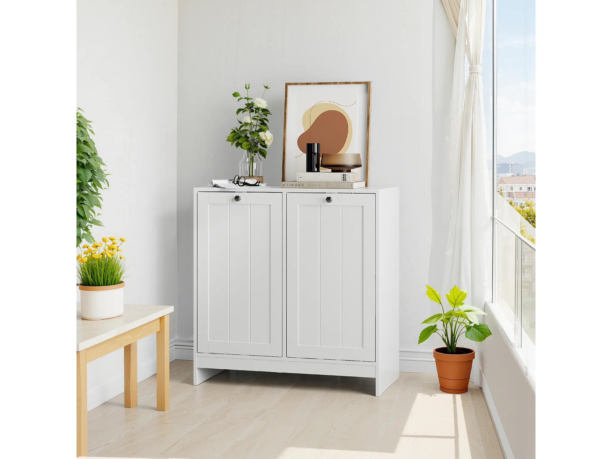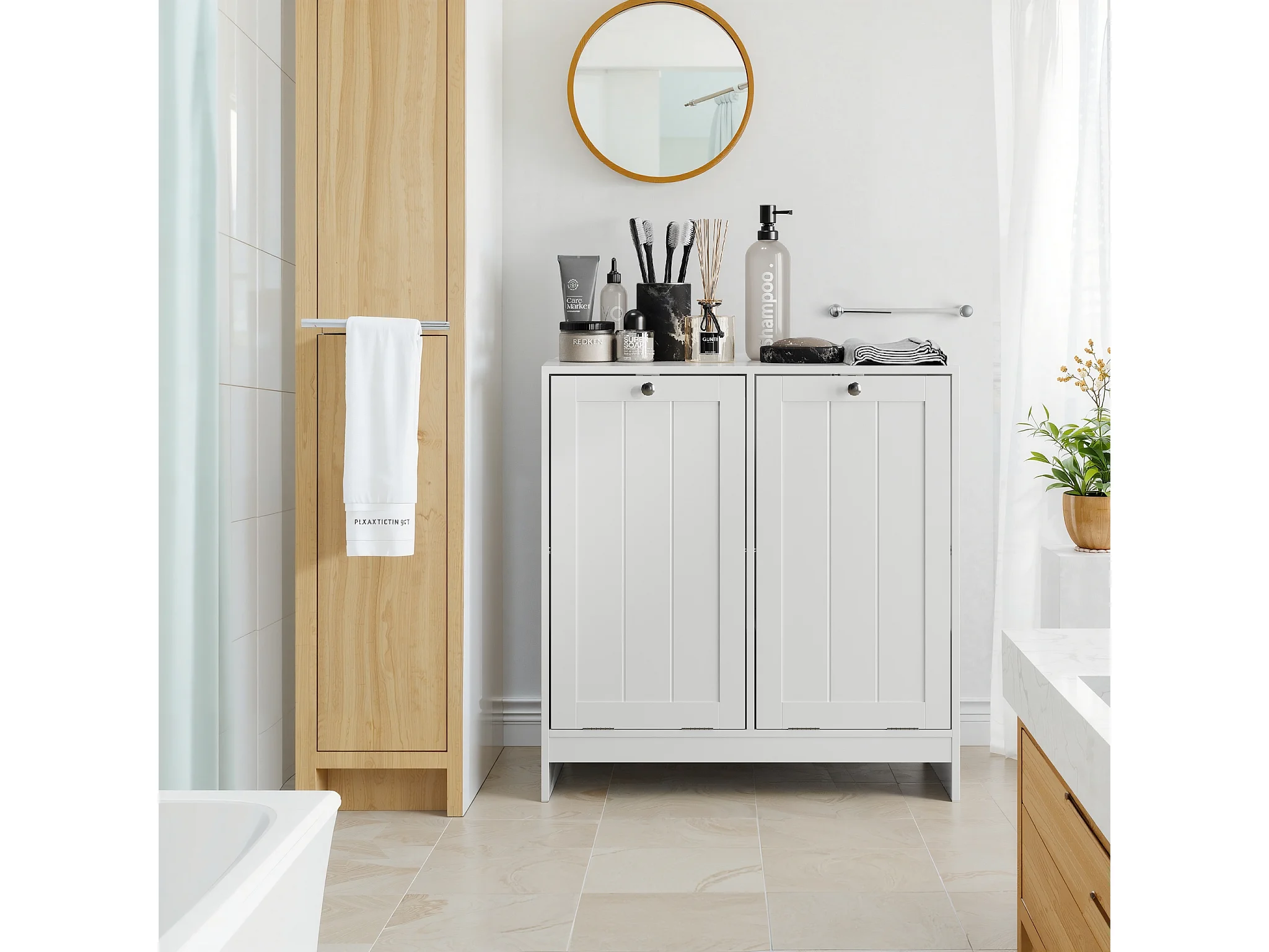 Panier à linge basculant avec panier amovible, meuble de rangement pour salle de bain, organisateur freestanding, blanc (66x33x68 cm)