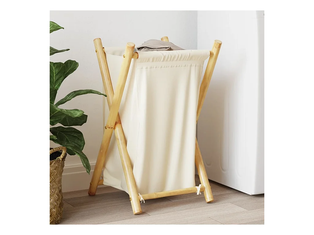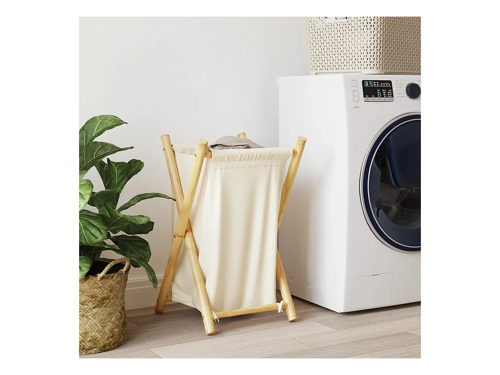Panier à linge blanc crème 45x55x63,5 cm bambou