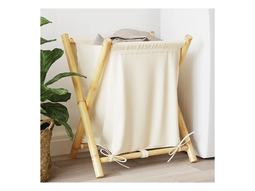 Panier à linge blanc crème 45x55x63,5 cm bambou
