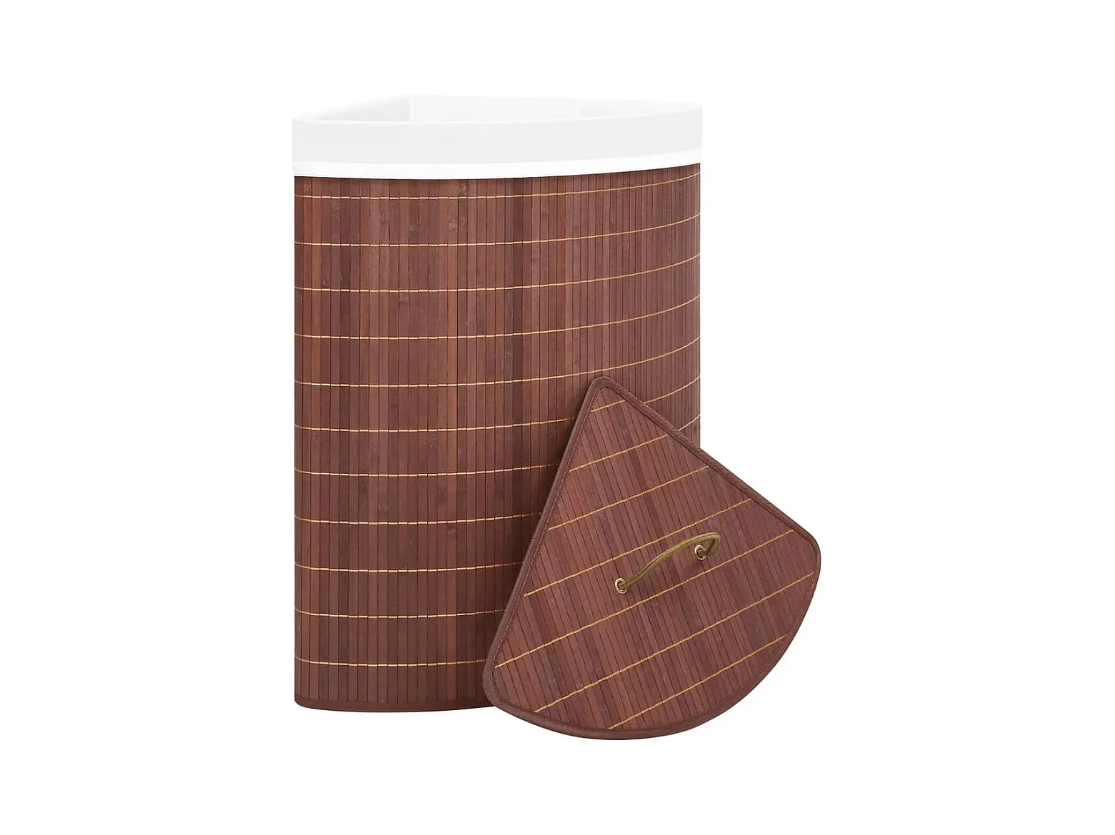 Panier à linge 100L avec couvercle et poignées, tri de linge avec 2 sacs, bambou, brun (62.5x37x60.5 cm)
