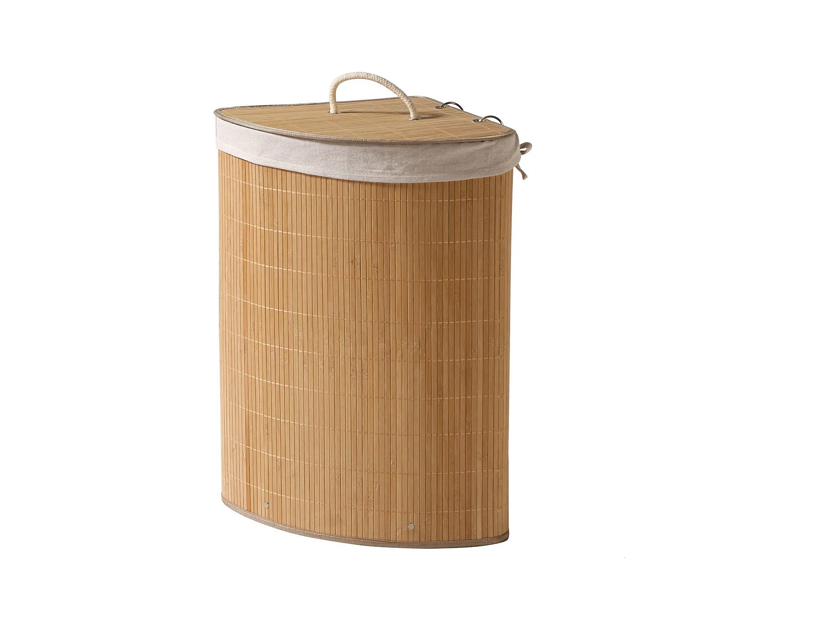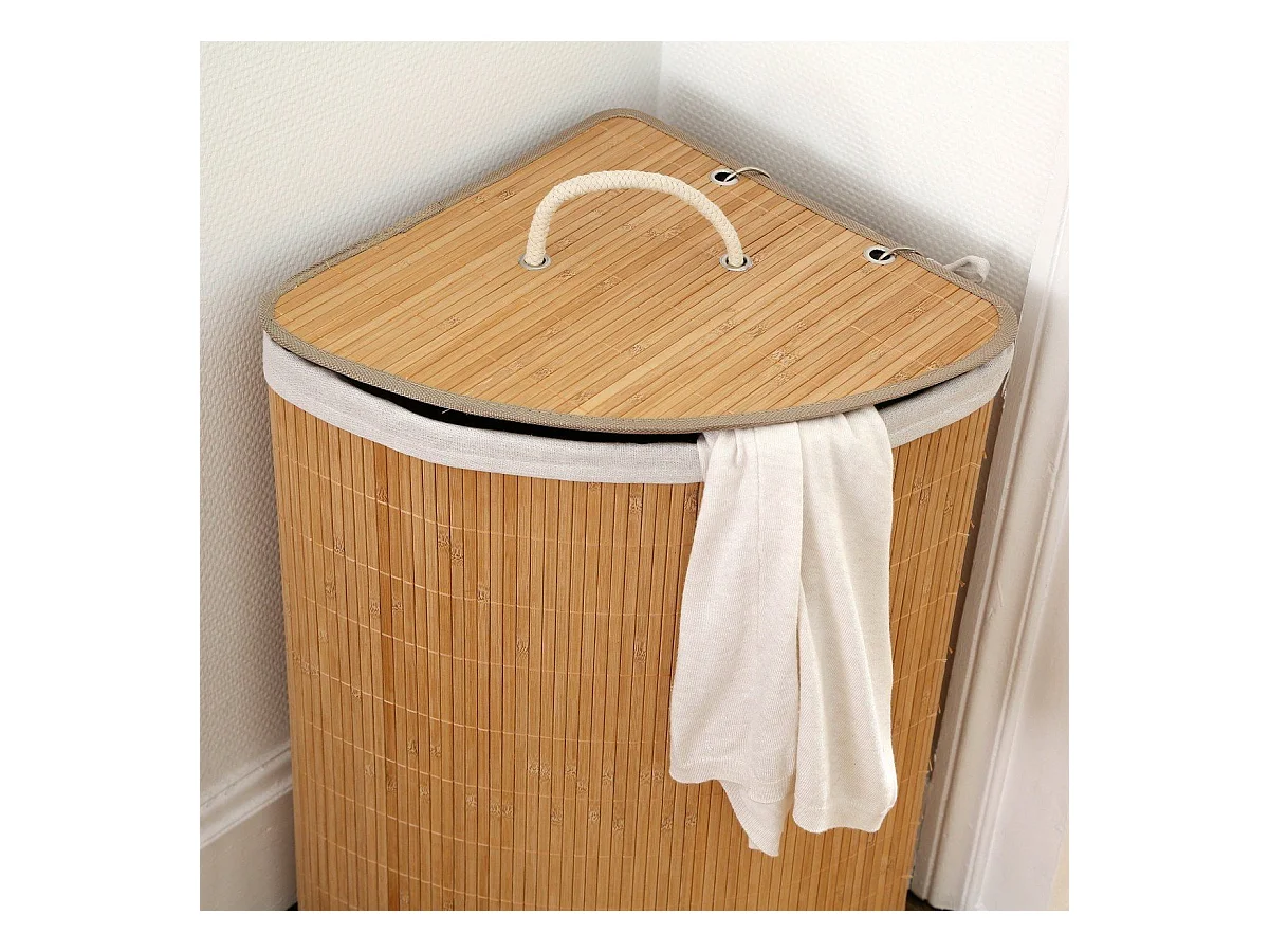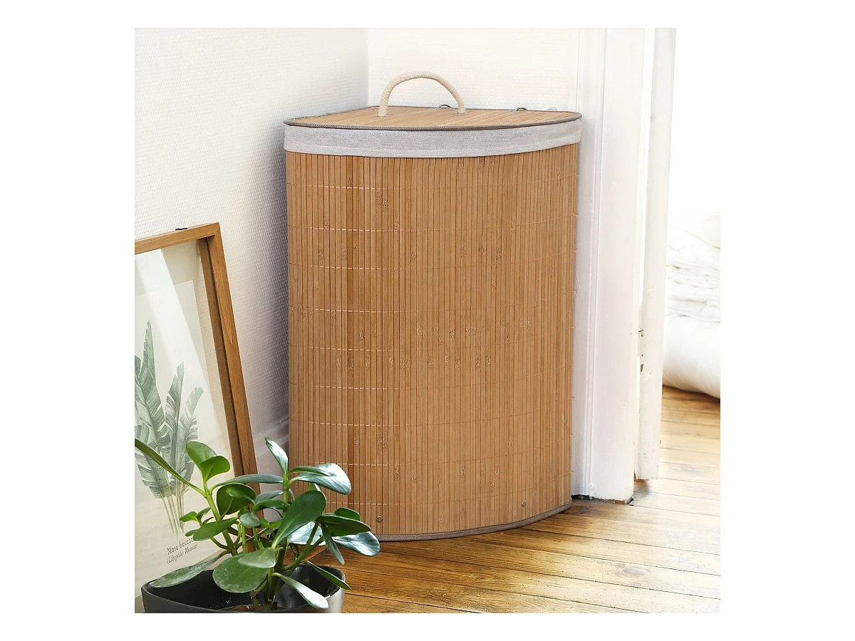 Panier à linge Valora en bambou naturel 3 compartiments 150 L avec couvercle