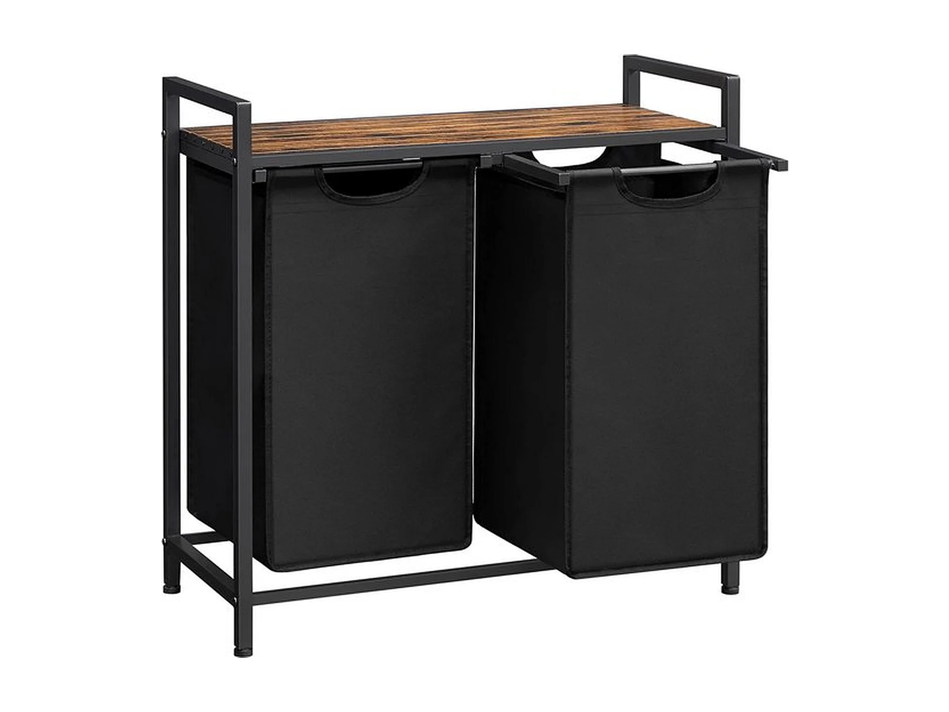 Panier à Linge SucceBuy Panier à Linge à 2 Compartiments, Organisateur de Linge avec Sacs Amovibles en Tissu Oxford 600D, Structure Métallique et Plateau en Bois