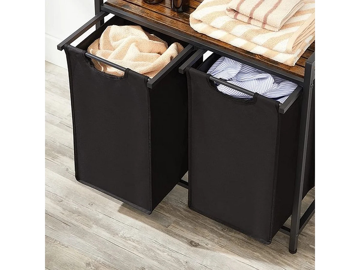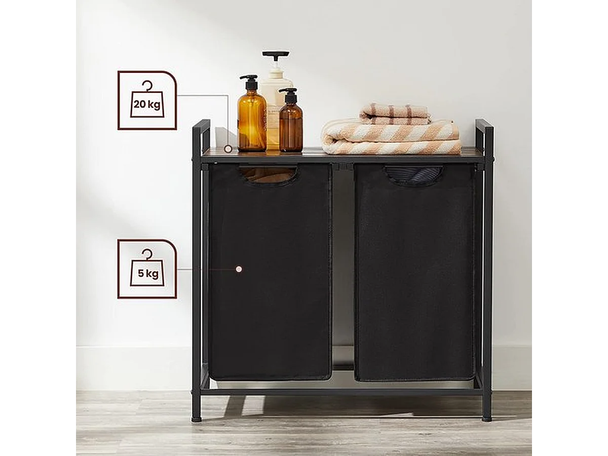 Panier à linge élégant avec 2 compartiments et support de rangement - Collecteur de linge peu encombrant