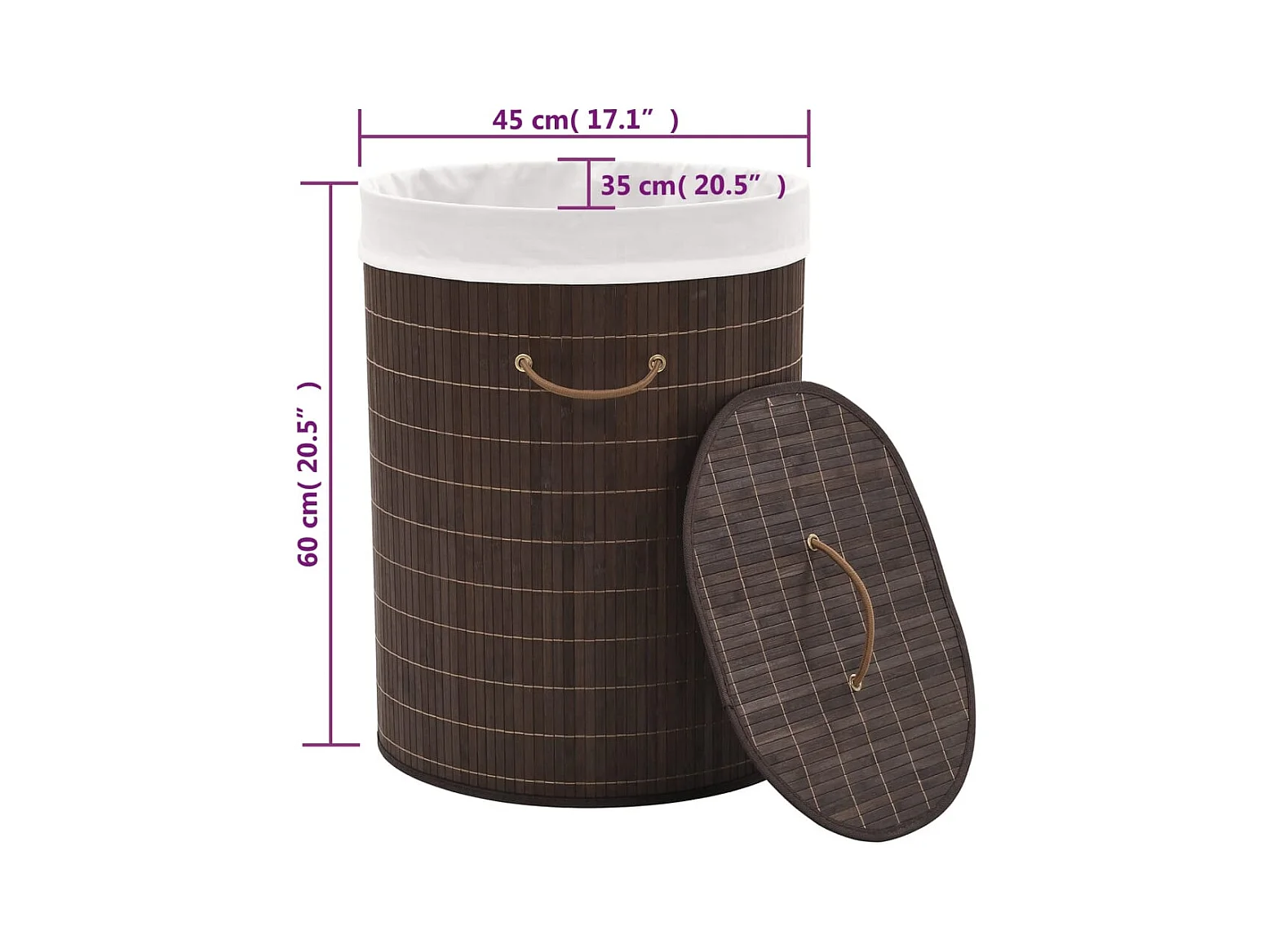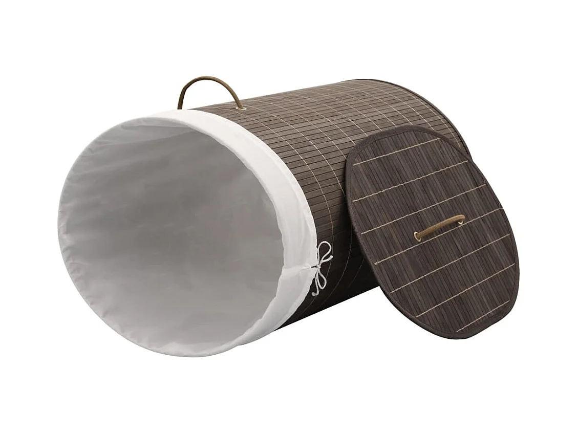 Panier à linge en bambou avec couvercle, 55L, design d'angle, avec sac amovible (35x35x60 cm)
