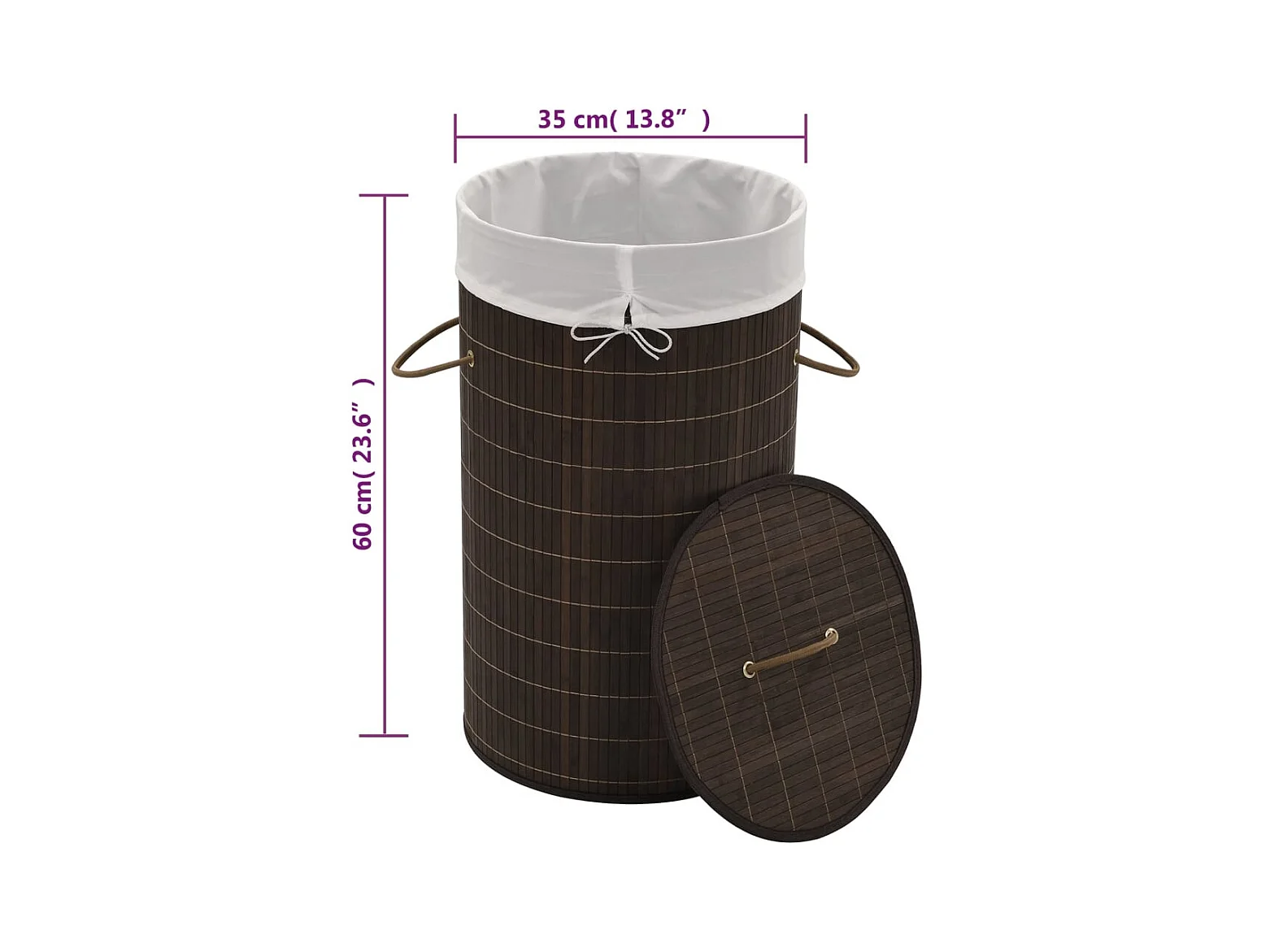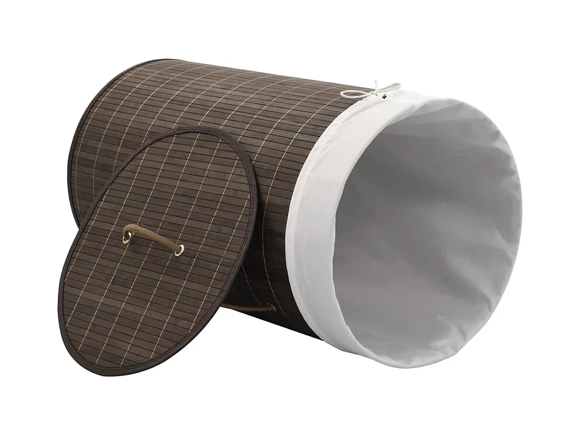 Panier à linge en bambou avec couvercle, 55L, design d'angle, avec sac amovible (35x35x60 cm)