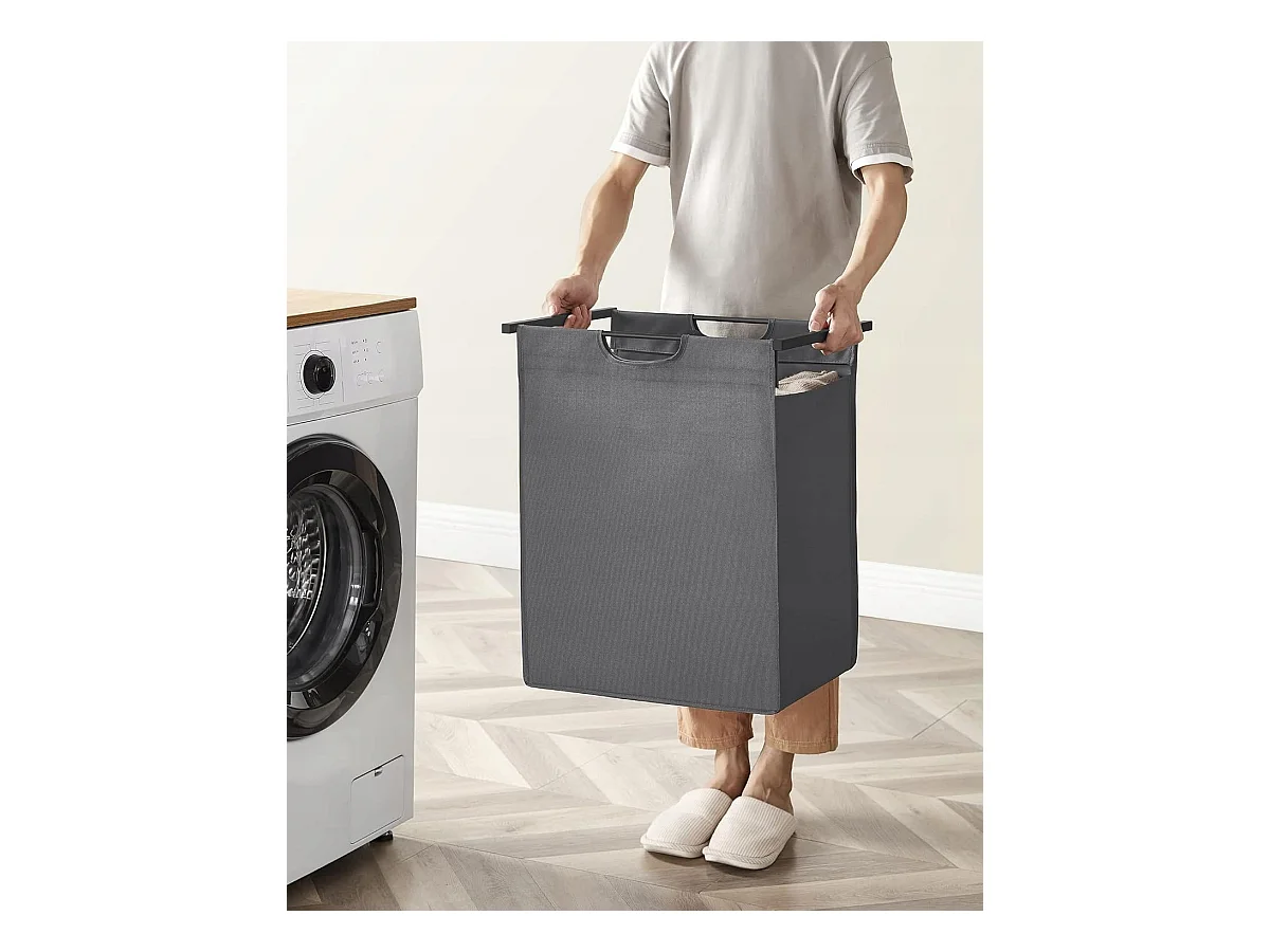 Panier à linge 2 compartiments coulissants gris clair - L71 cm