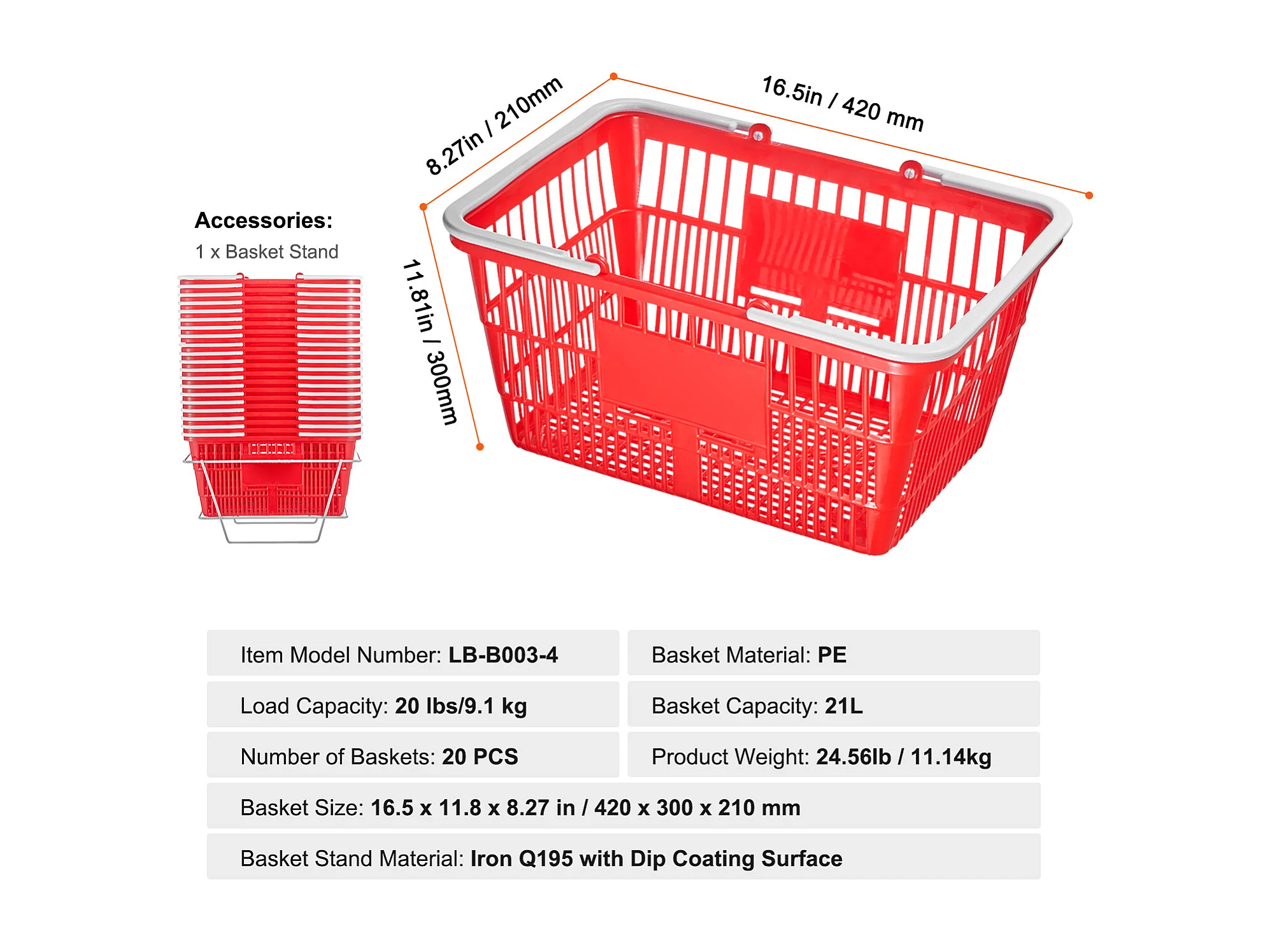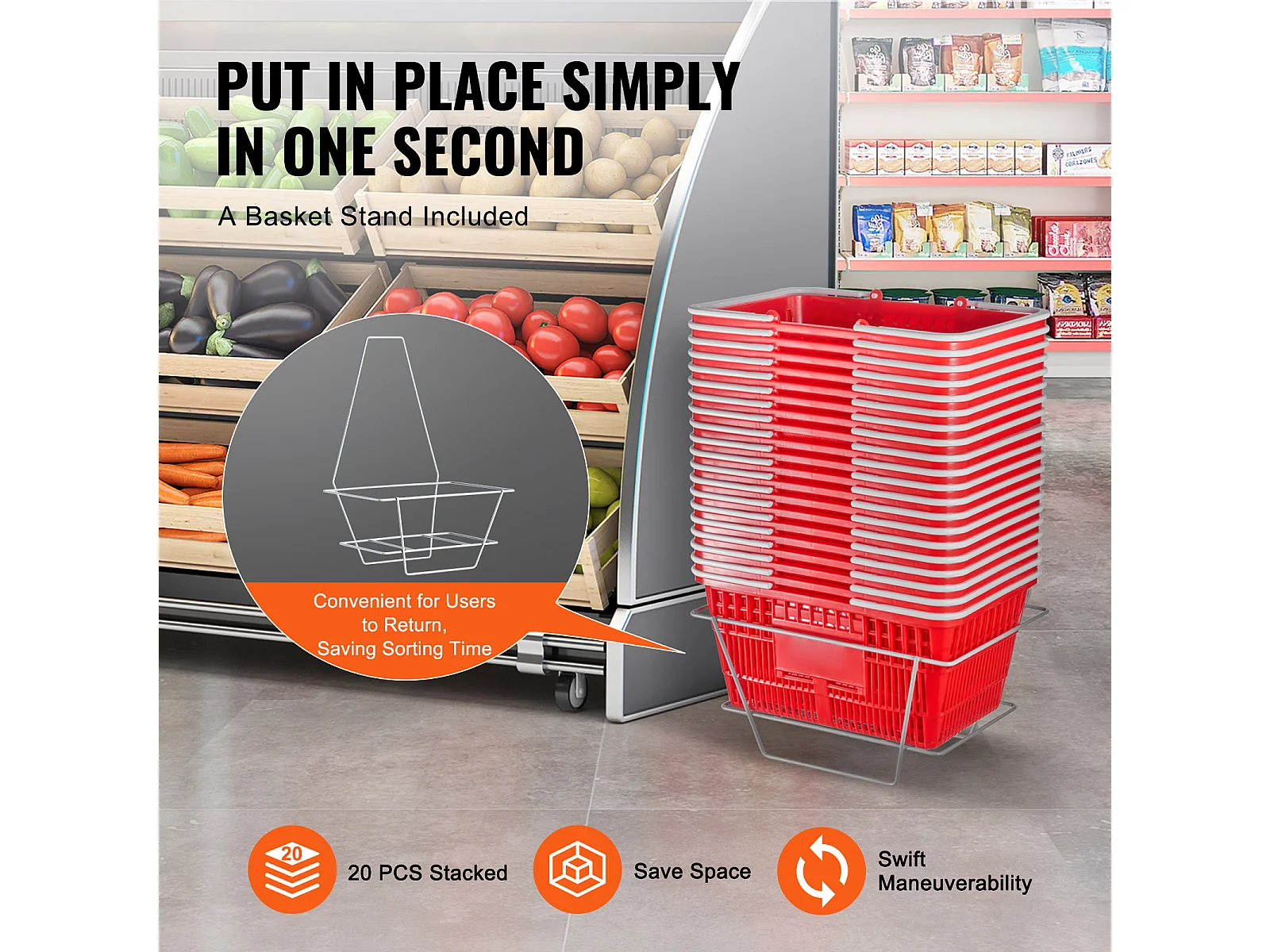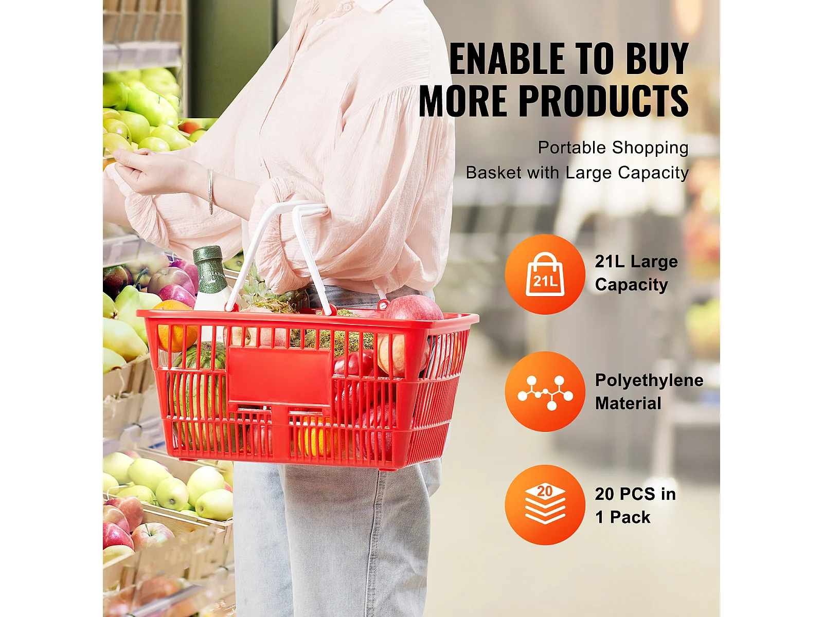 Panier à Provisions SucceBuy Portable, 20 Pièces, 21 L Rouge avec Poignée et Support