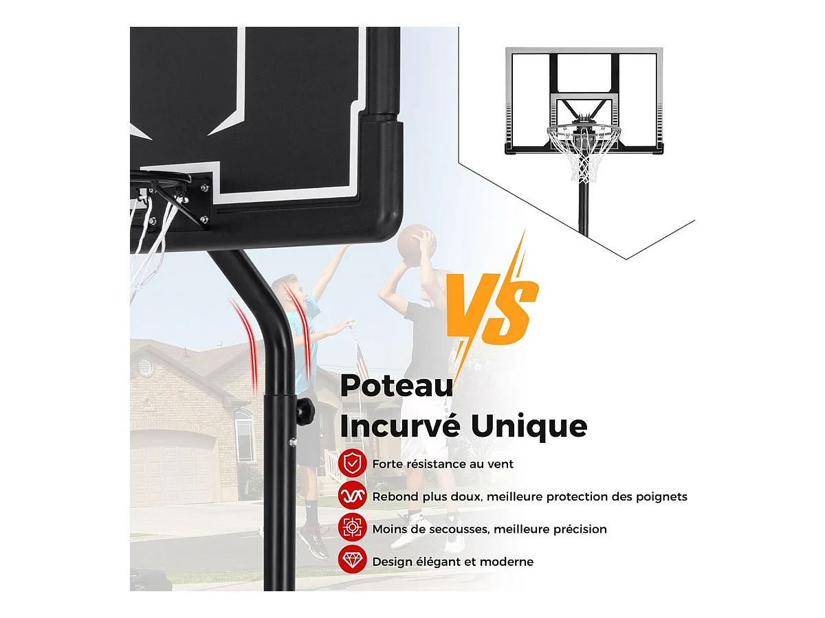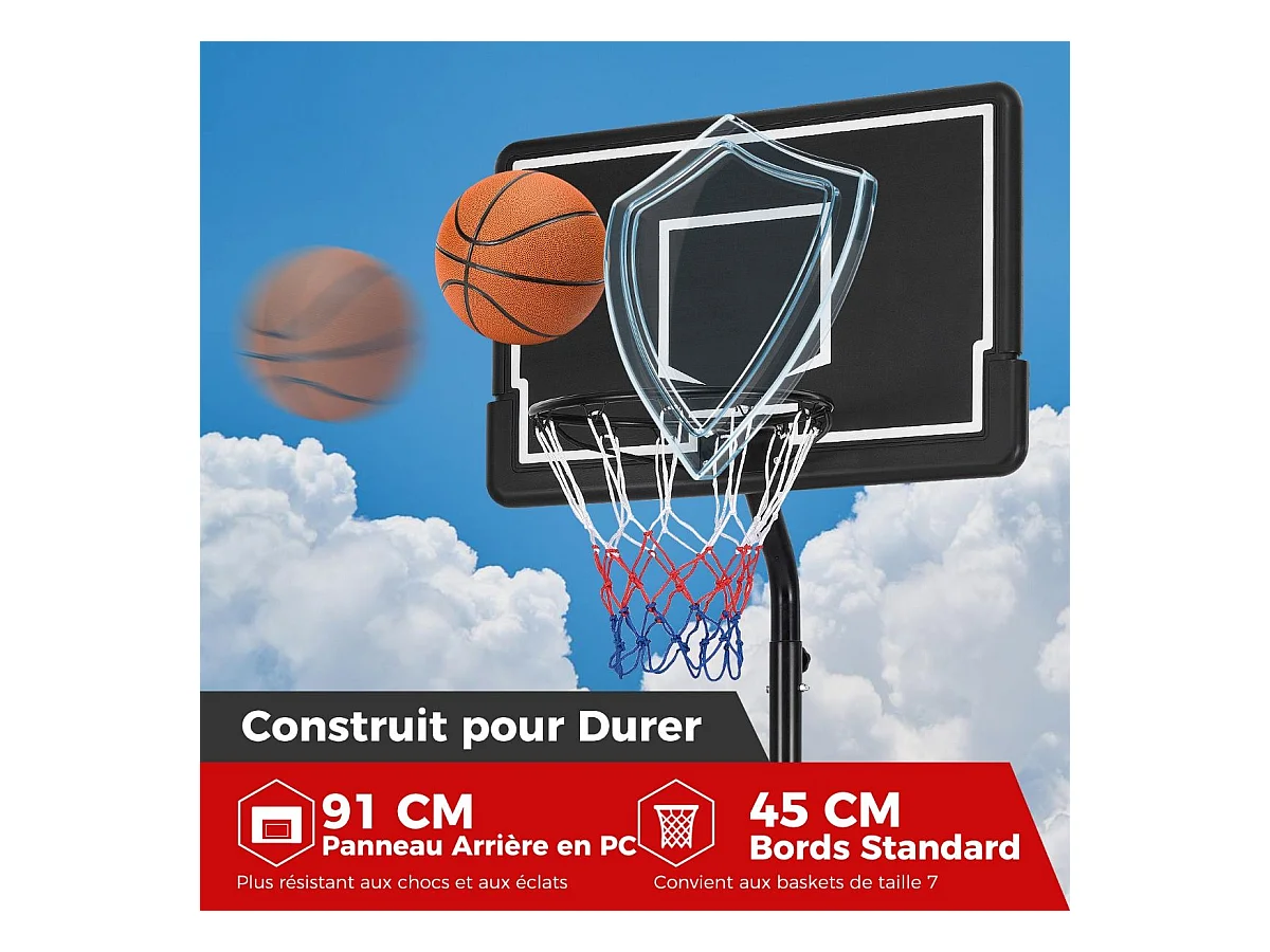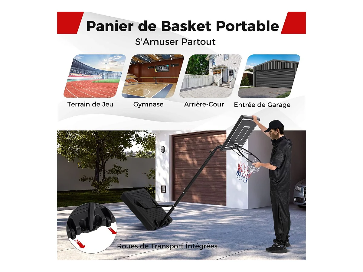 Panier de Basket-Ball Hauteur Réglable 225-305 cm, Support de Basketball Mobile avec Panneau Incassable de 112 cm, Panneau Filet de Remplacement et Roues