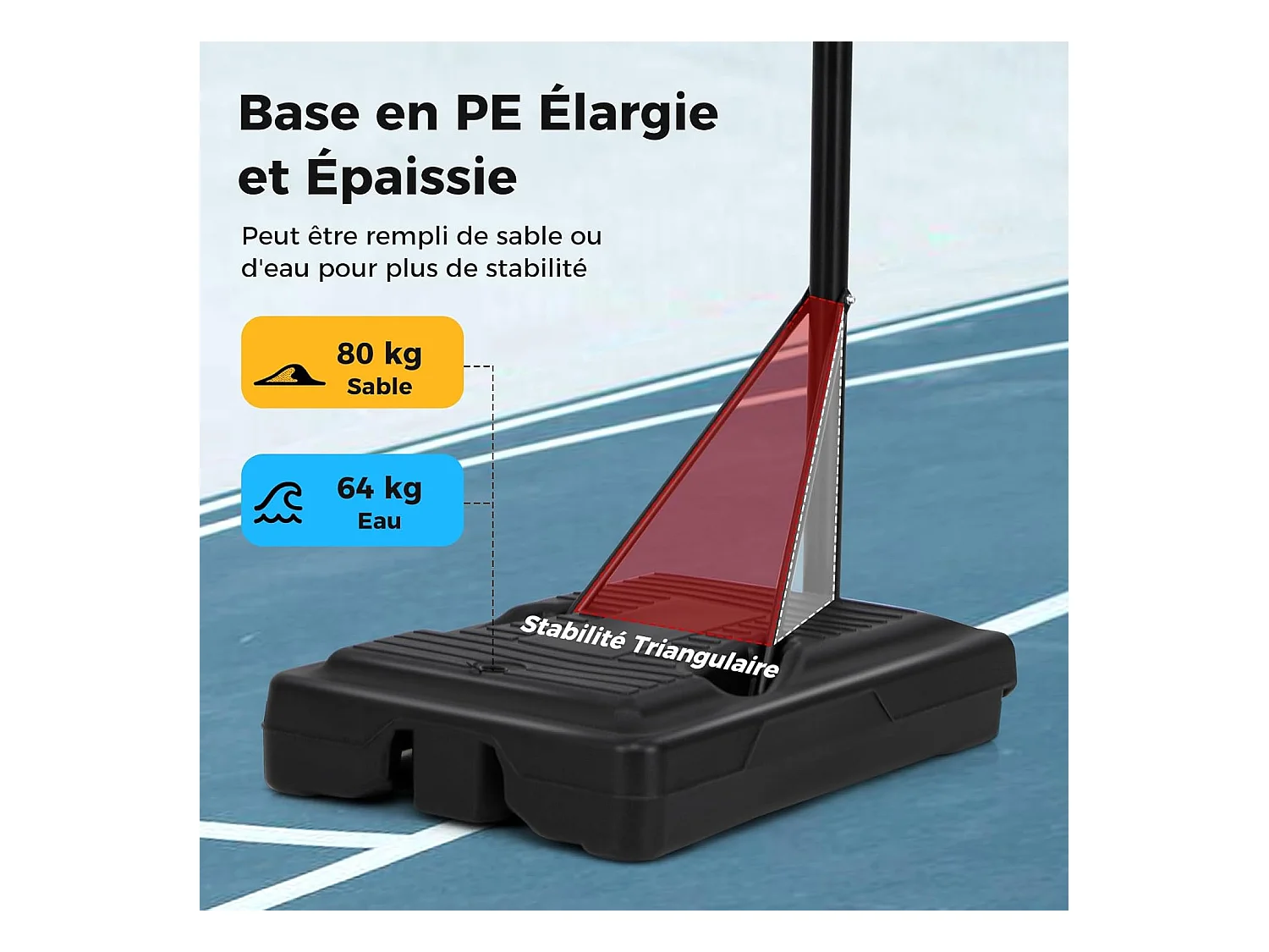 Panier de Basket-Ball sur Pied avec Hauteur Réglable à 8 Niveaux 172-305 CM, Ensemble de Basketball avec Tube Central Amovible Base de 32 L