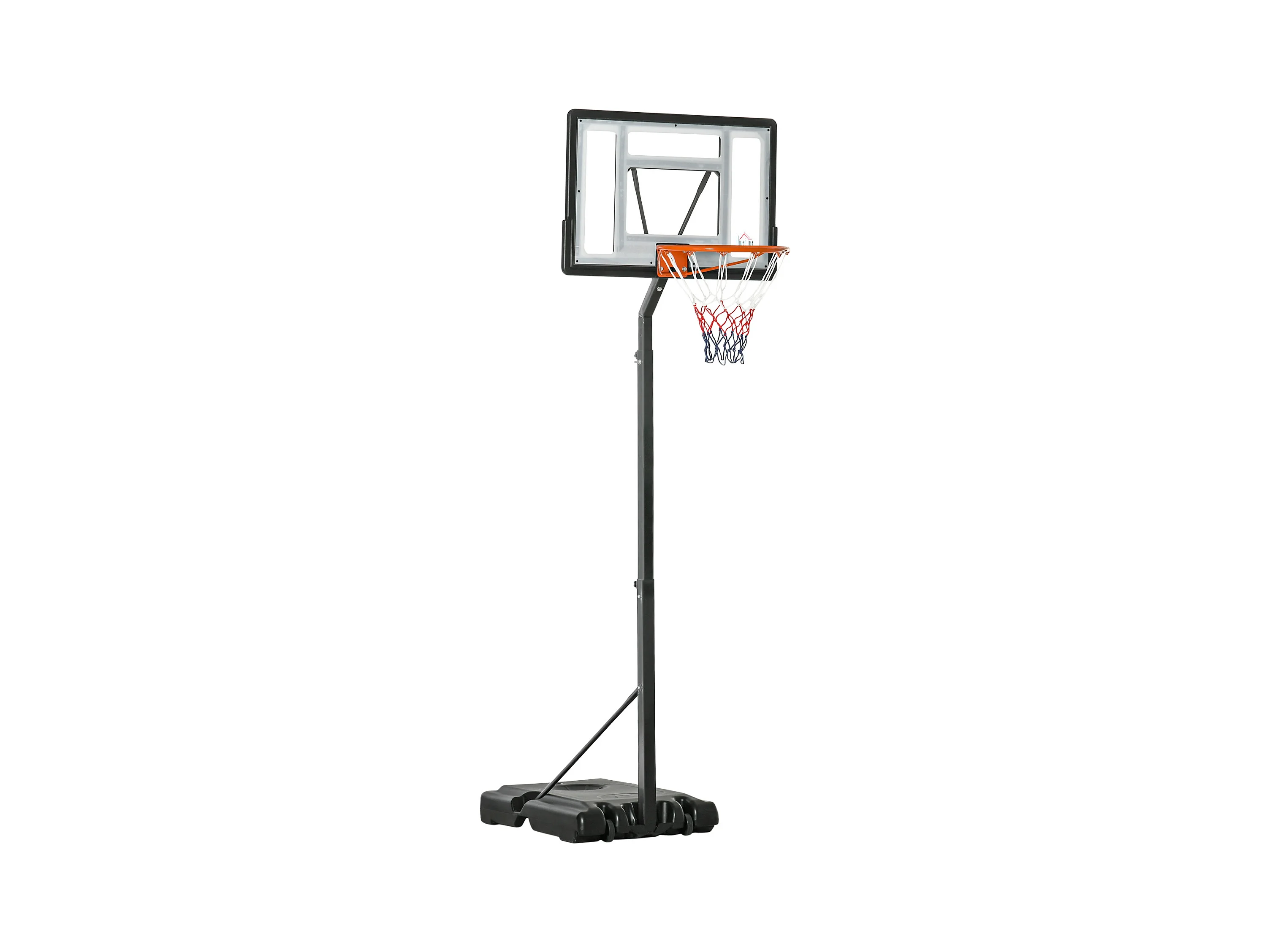 Panier de basket réglable en hauteur pour extérieur, cadre en acier, PVC, noir, avec roues (83x75x206-260cm)