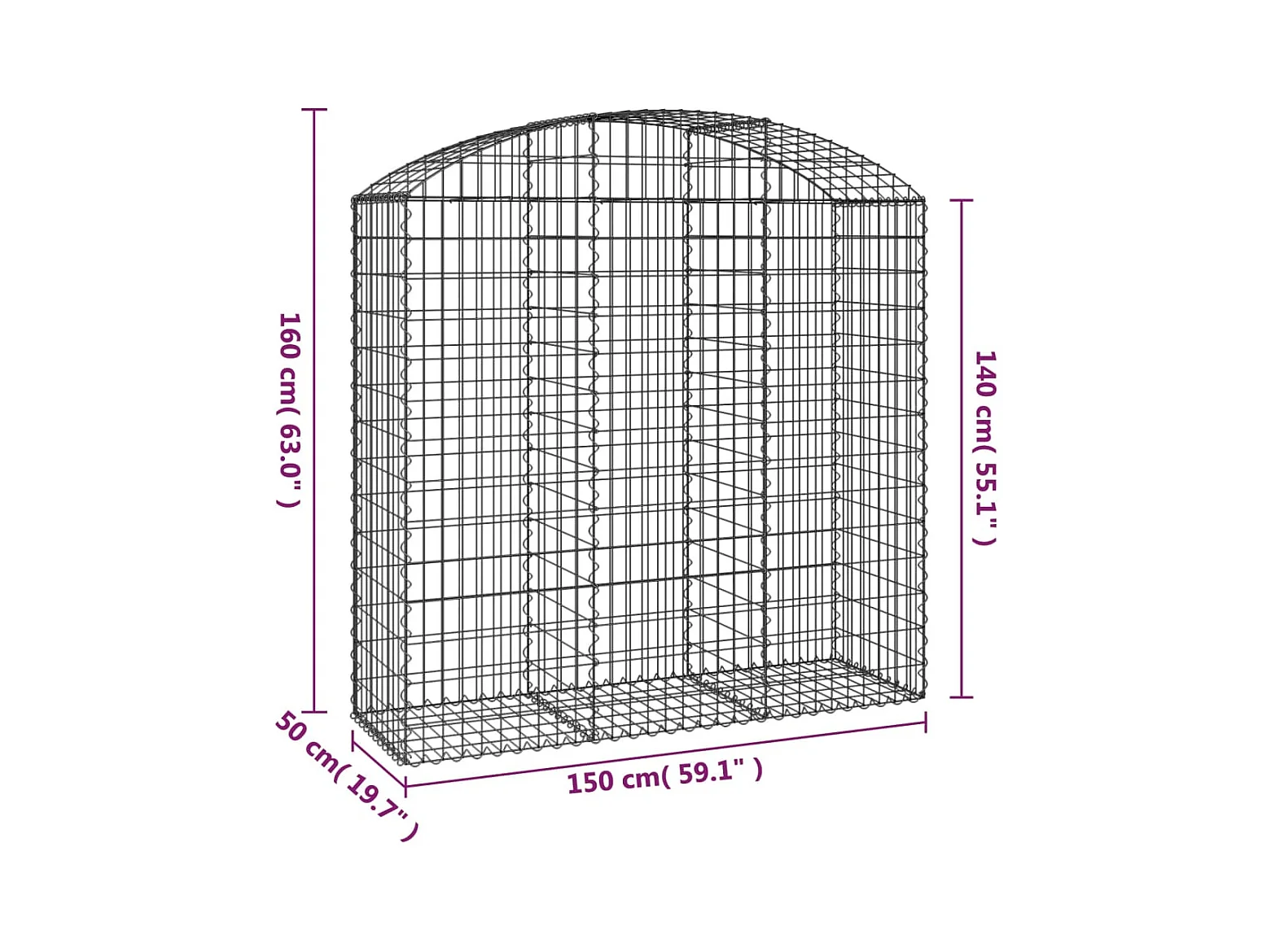 Panier de gabions arqué 150x50x140/160 cm Fer galvanisé