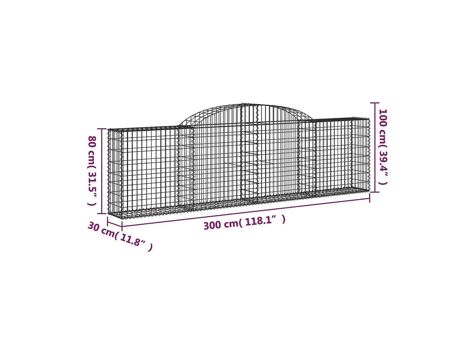 Panier de gabions arqué 300x30x80/100 cm Fer galvanisé