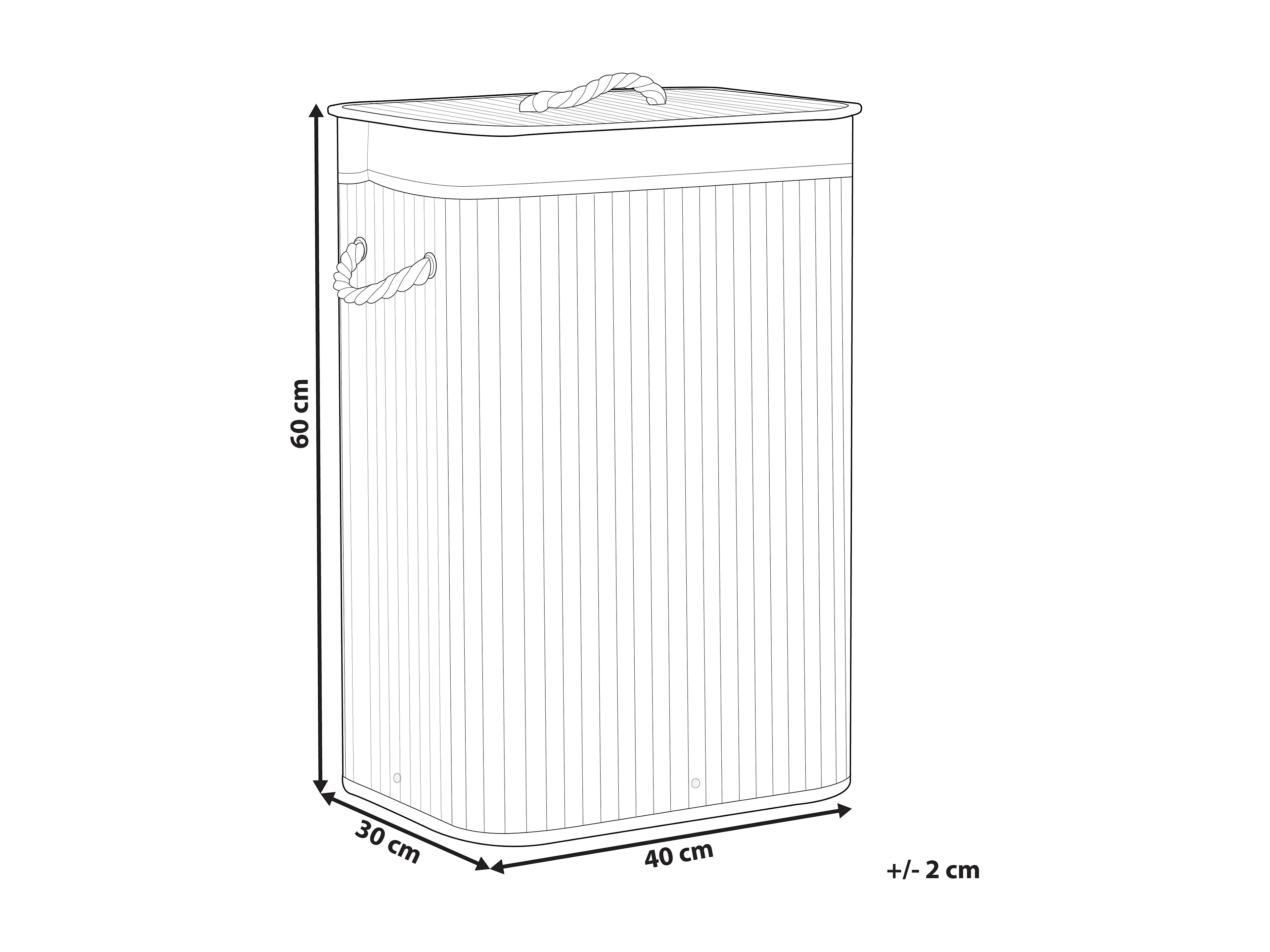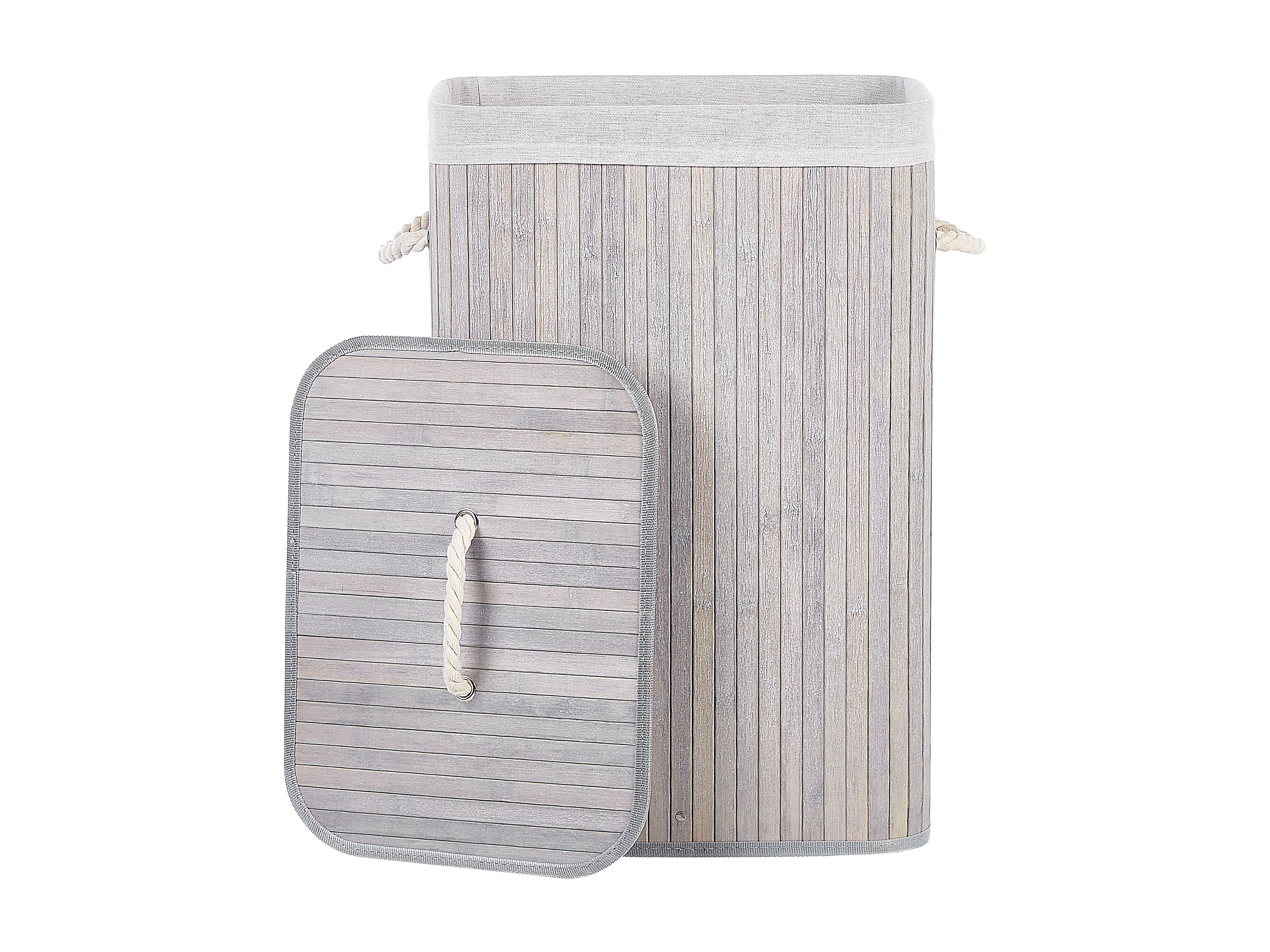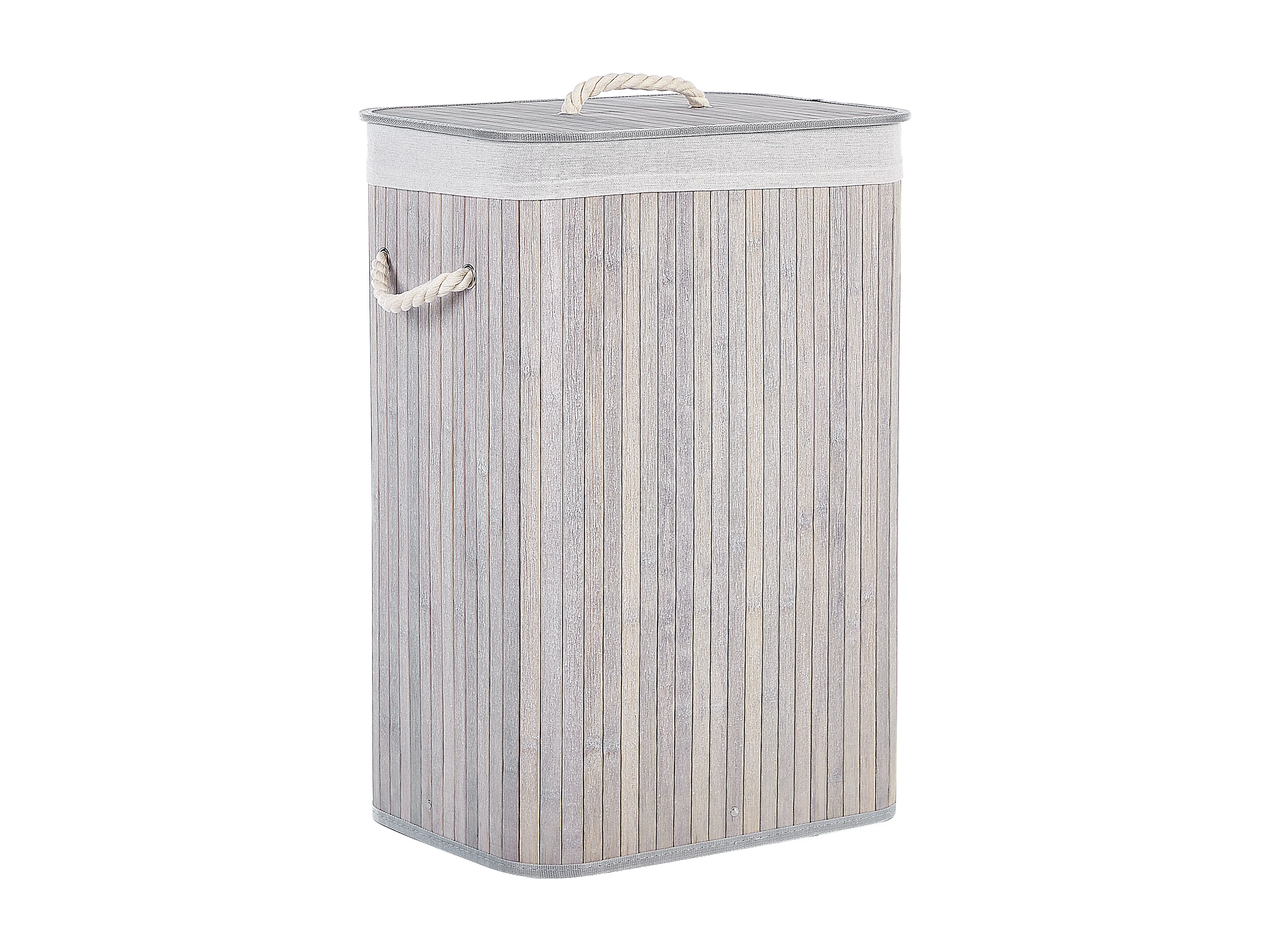 Panier à linge en bambou avec couvercle, 70 L, sac amovible, gris (40x30x60 cm)