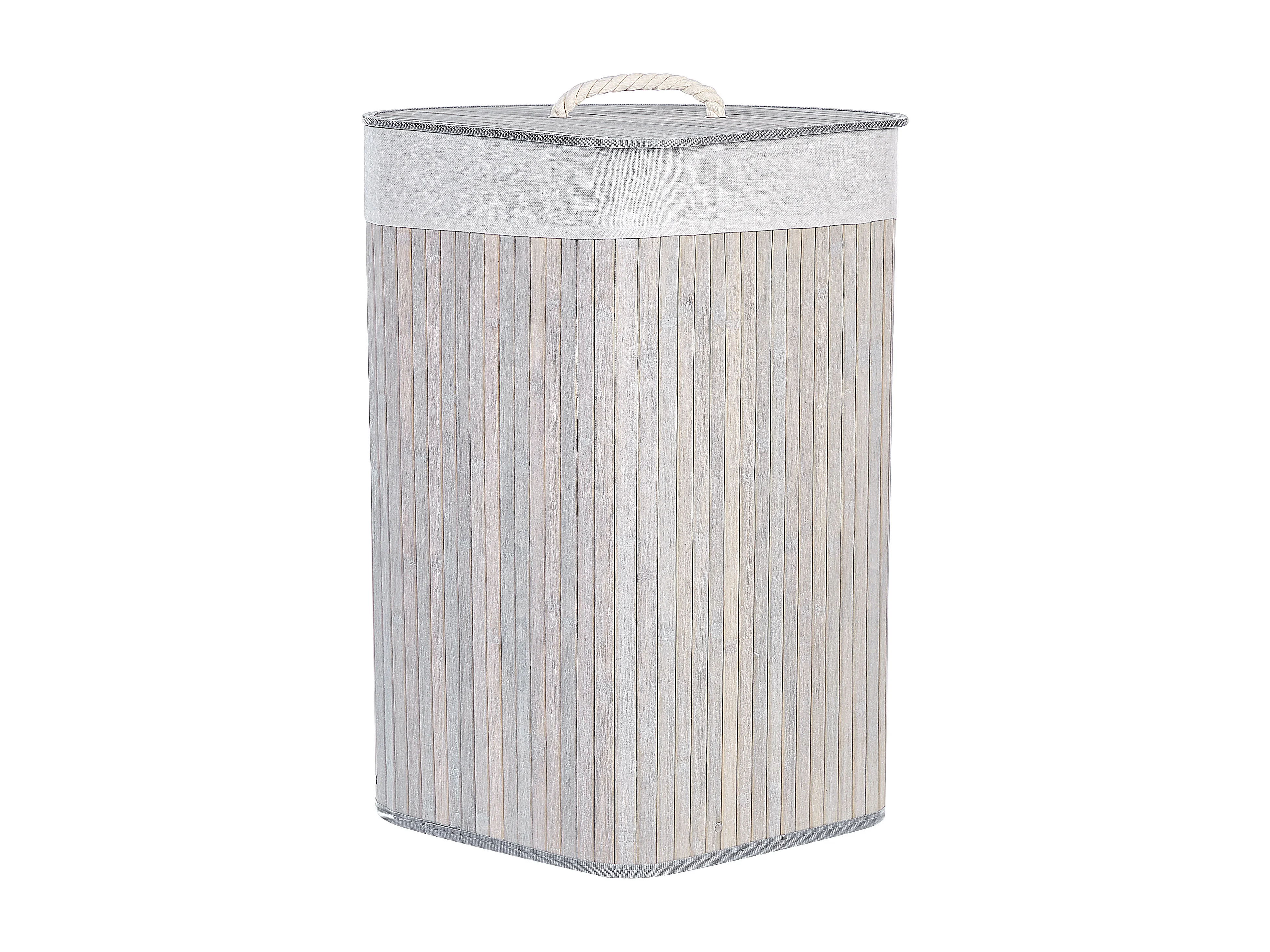 Panier à linge en bambou avec couvercle, 70 L, sac amovible, gris (40x30x60 cm)