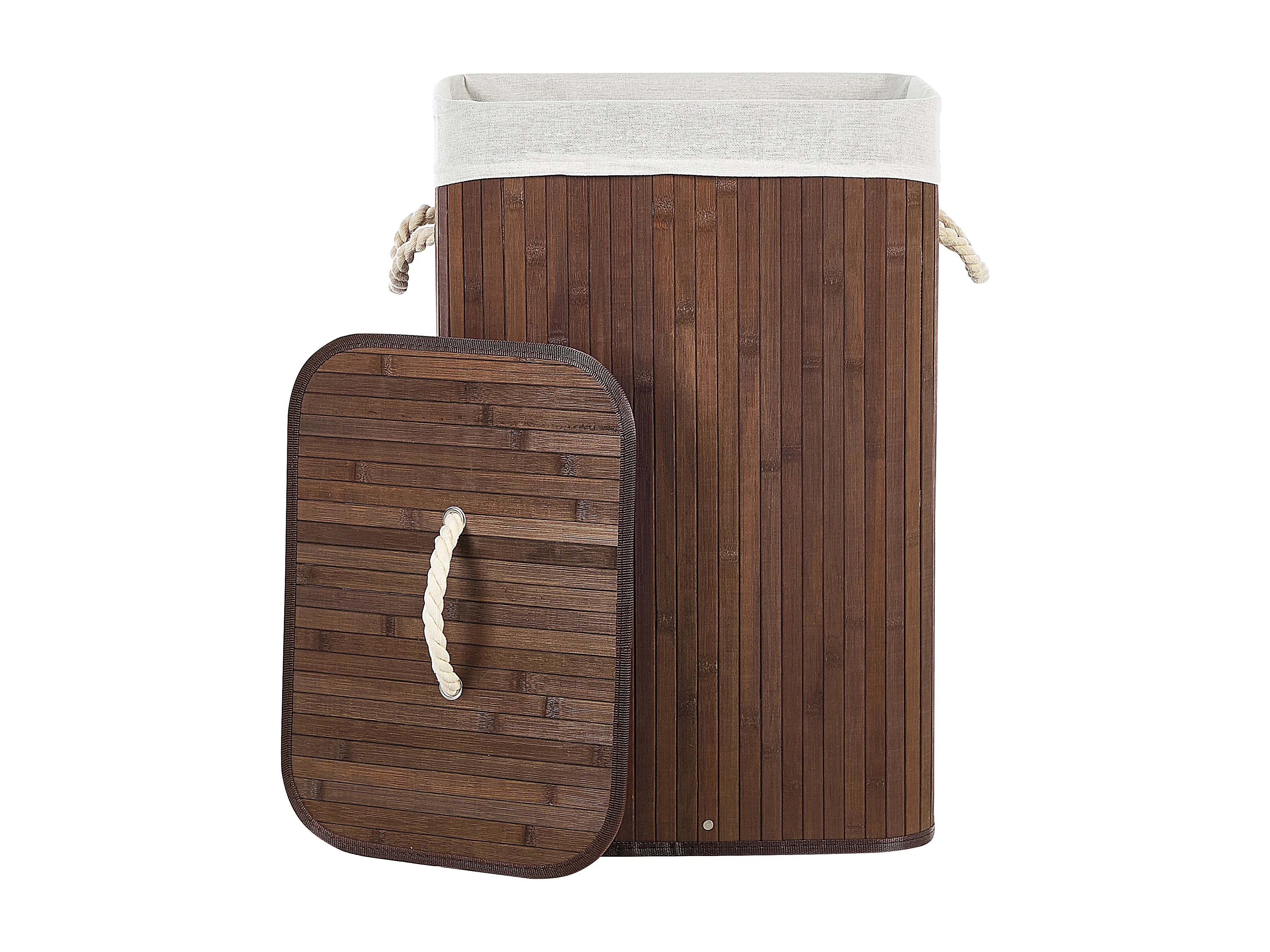 Panier à linge pliable en bambou avec 3 poignées, 72L - L40 x H60 cm