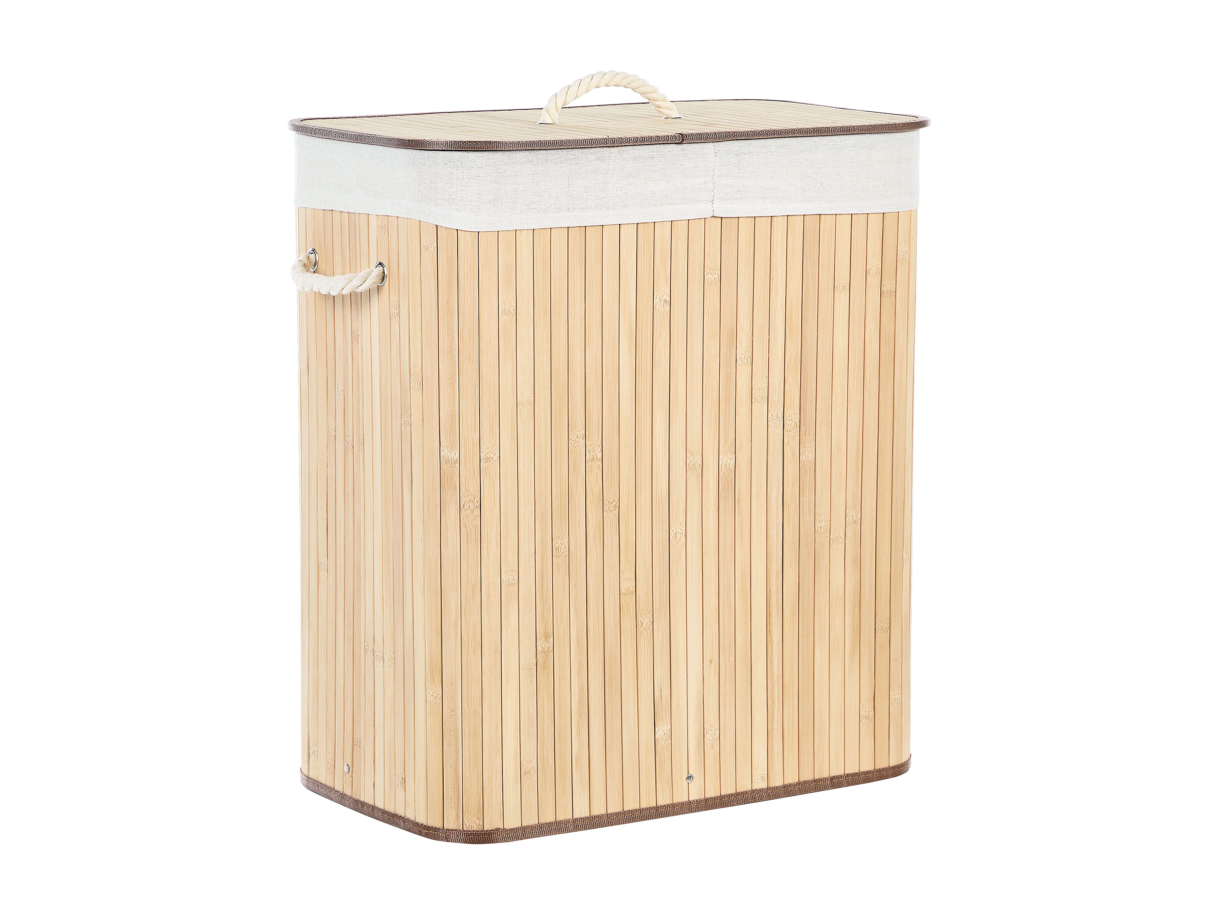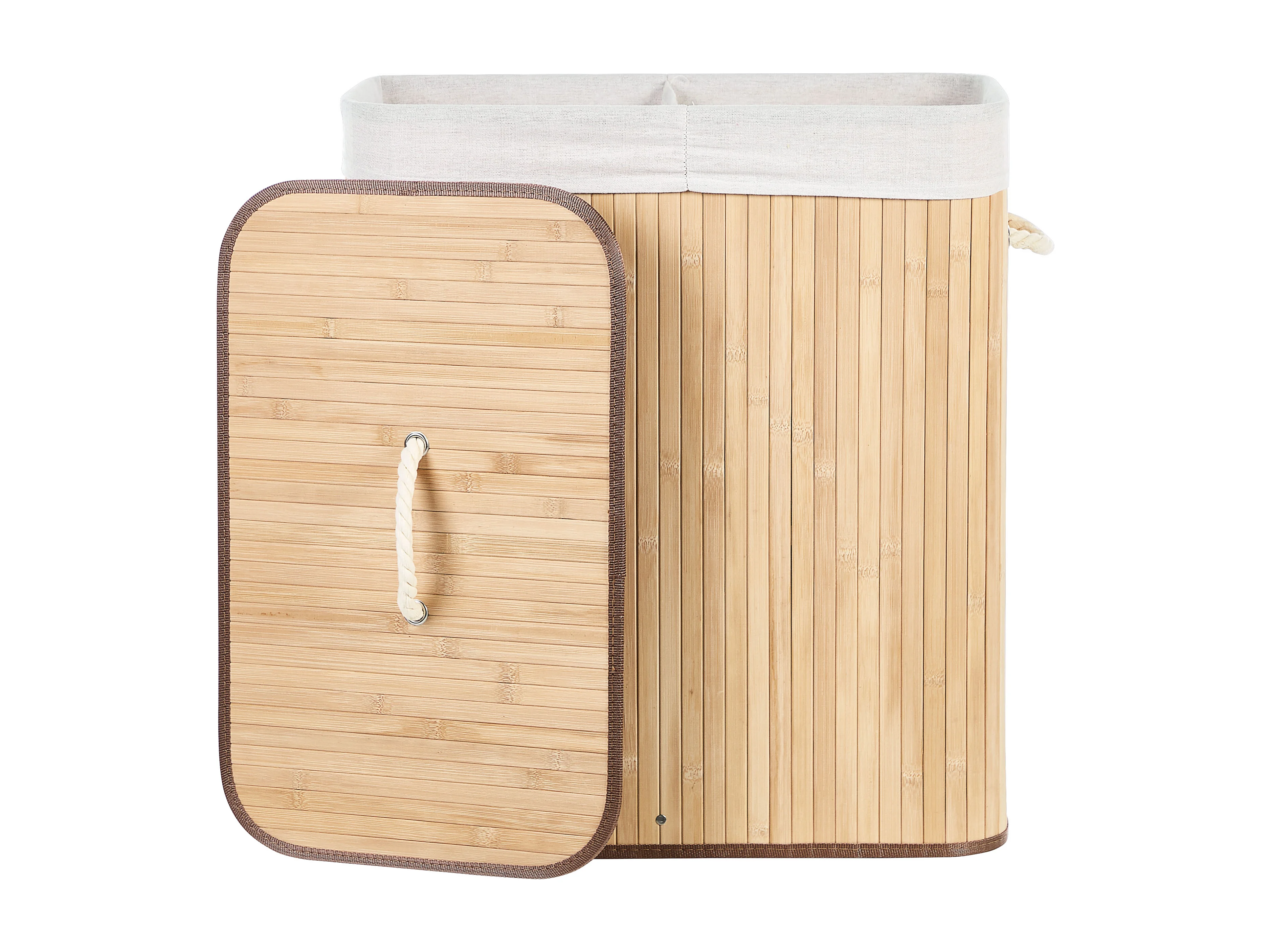 Panier à linge avec couvercle, bambou, avec sac amovible, 72L, beige (40x30x60 cm)