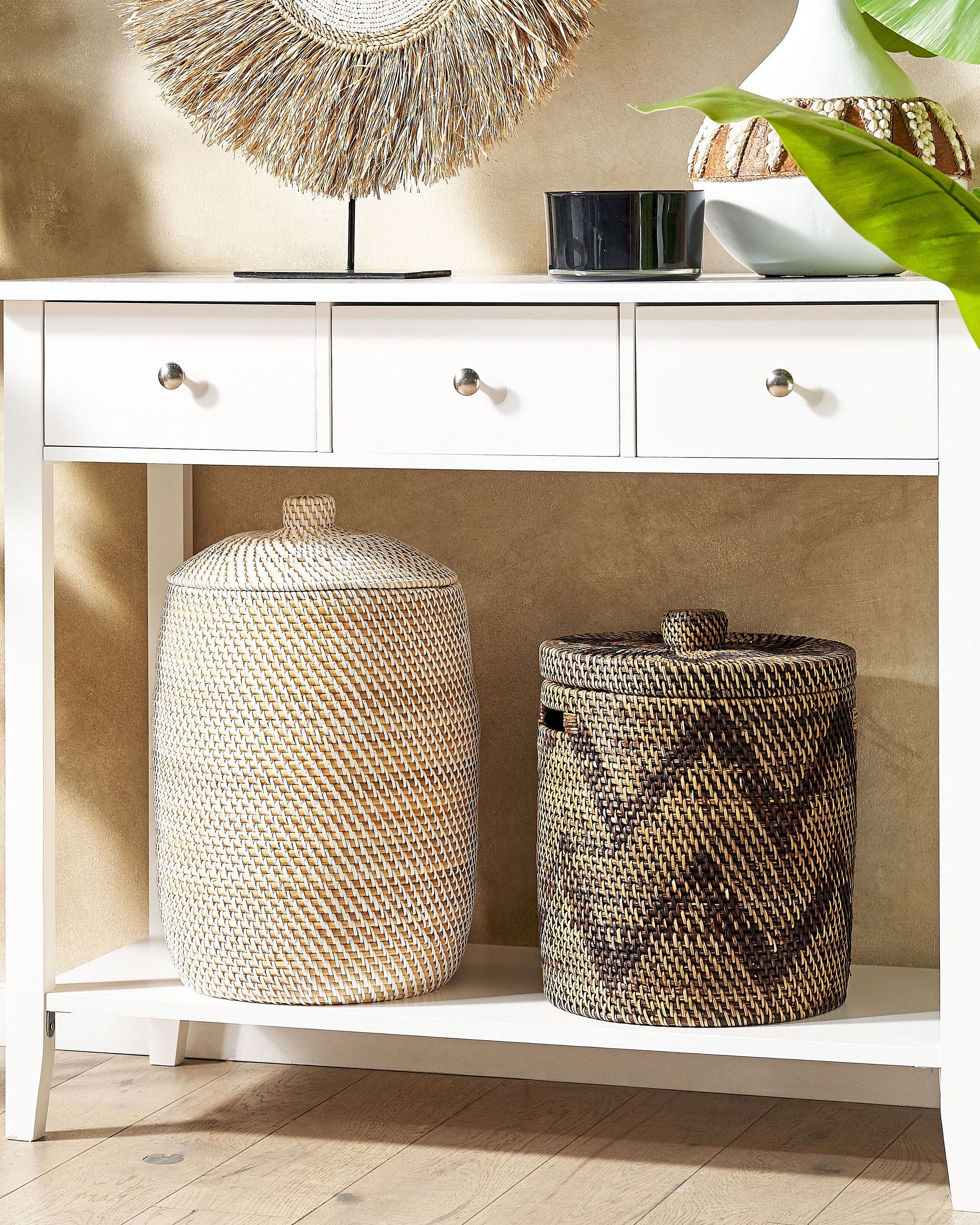 Lot de 2 paniers de rangement BURTON – Rotin kubu naturel