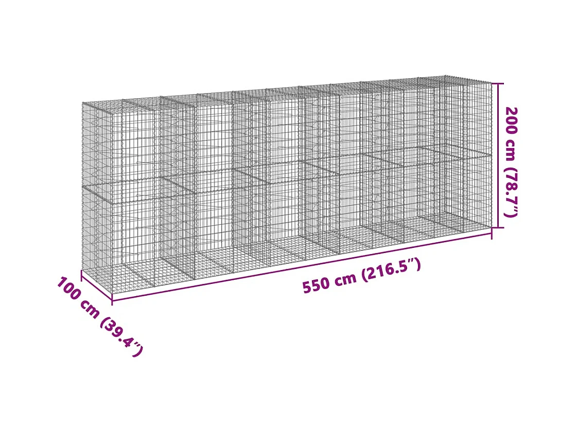 Panier gabion avec couvercle 550x100x200 cm fer galvanisé