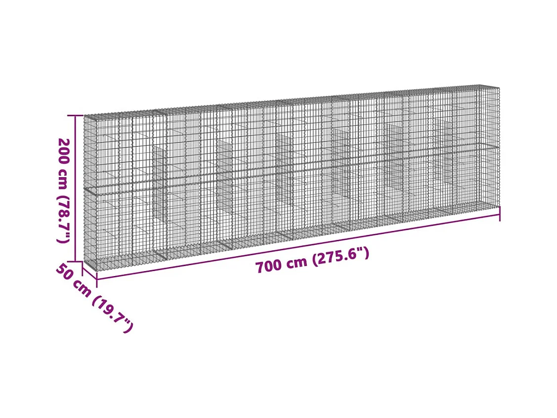 Panier gabion avec couvercle 700x50x200 cm fer galvanisé
