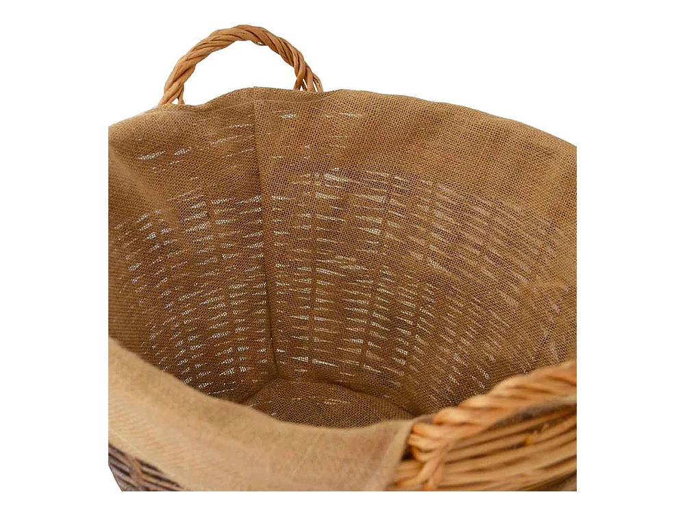 Panier rond pour l'exposition du bois de chauffage en bois d'écorce avec doublure en jute