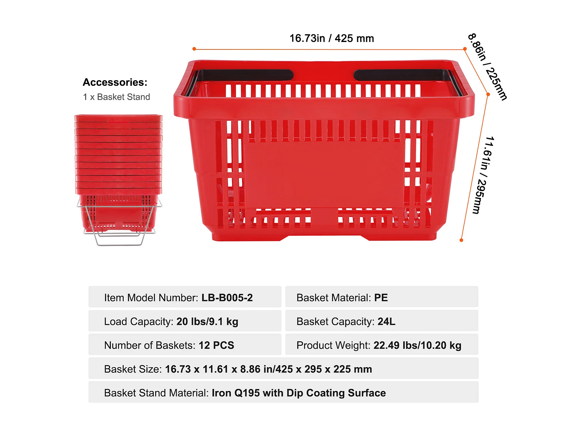 Paniers à Provisions SucceBuy, 12 Pièces, 24 L Rouges avec Support