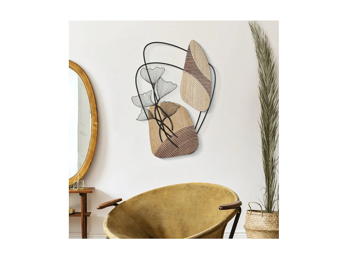 Décoration Murale en Métal "Tali" 100cm Naturel & Noir