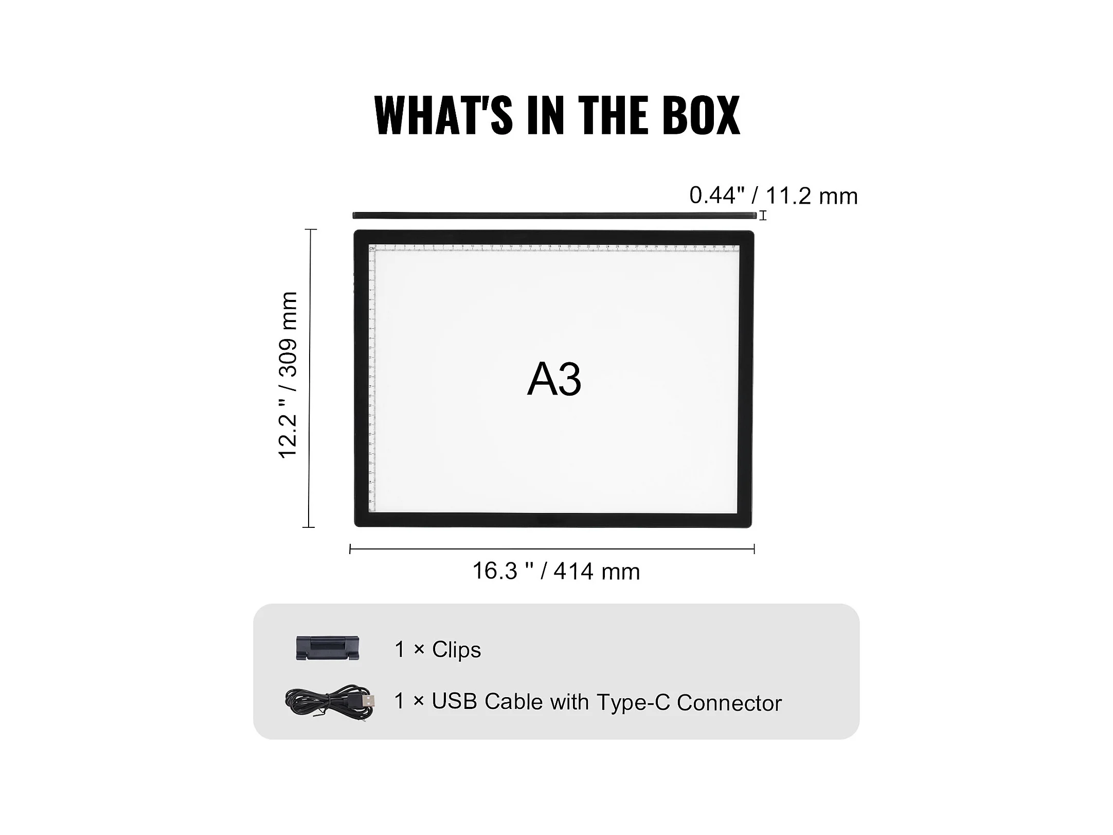 Panneau Lumineux LED SucceBuy A3, Alimenté par USB, Intensité Variable sur 3 Niveaux pour le Traçage