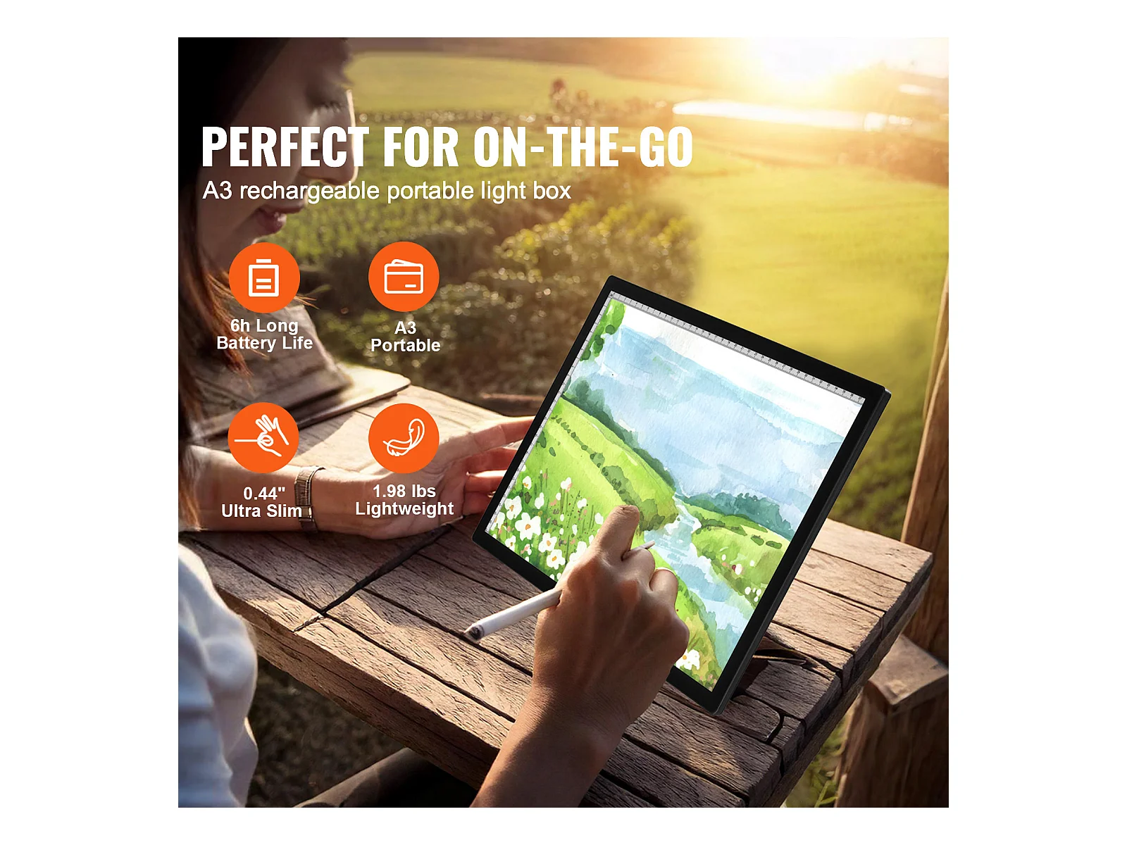 Panneau Lumineux LED SucceBuy A3 Rechargeable à Intensité Variable sur 6 Niveaux, Noir